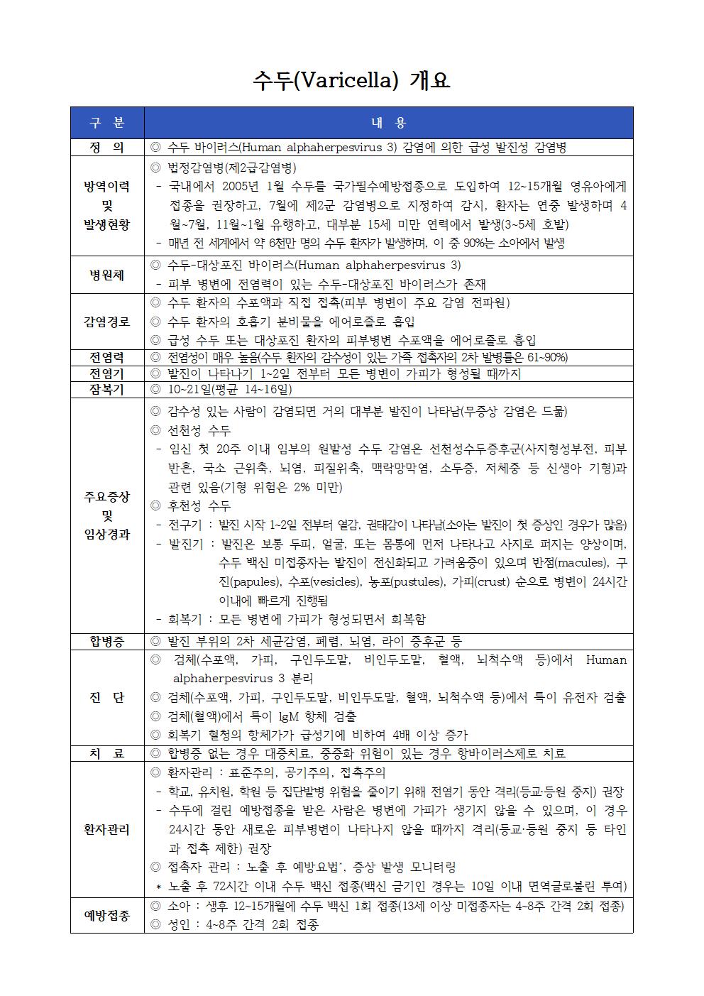 수두, 수족구병 유행에 따른 감염병 정보 안내