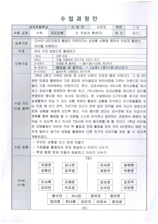그간 함께 해주신 모든 선생님들과 지원해주신 교장, 교감선생님들께 깊은 동료애를 표합니다. 내년에는 우리수업으로 수업나눔을 하고 업그레이드가 필요할 때 한번씩 컨설턴트를 모시면 좋겠단 생각이 들었습니다.