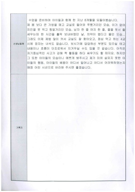 내년에는 더 많은 선생님께서 함께 하실 수 있도록 교사에게 조금의 여유를 더 줄 수 있는 학교운영이 되었으면 합니다.