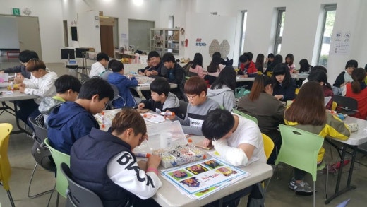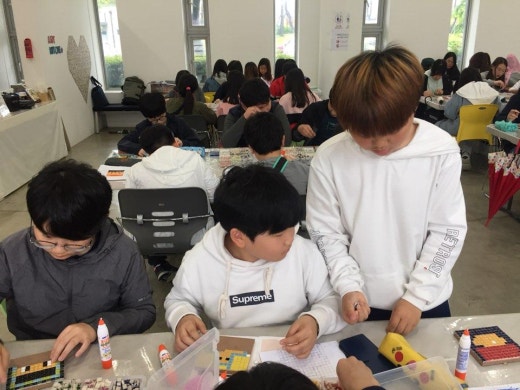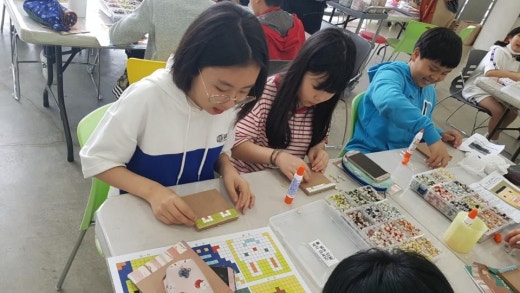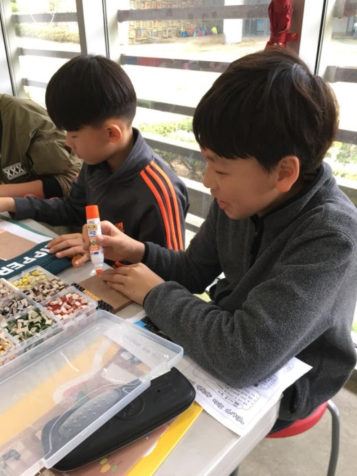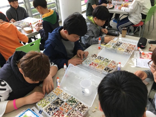 1,3,5반은 체험활동을 먼저하고 전시관을 관람했고 2,4반은 전시관 관람을 먼저하고 체험활동을 뒤에 진행했습니다. 전시관 관람활동에서는 아이들이 직접 마음에 드는 도자기를 선택하고, 선물을 받은 도자기를 SNS에 인증하는 참여형 전시에서부터, 1550개의 선행이 적혀있는 도자기, 시간에 따라 변화하는 모습 자체가 작품인 도자예술 등 아이들의 고정관념을 타파할 수 있는 다양한 형태의 작품들을 관람하였고, 아이들과 함께 여러가지 미션을 수행하였습니다. 사람마다 같은 작품을 보고도 받아들이는 메시지가 다르다는 것, 중요하게 여기는 미적관점이 다르다는 점 등 여러가지를 느낄 수 있는 기회였습니다. 체험활동은 아트키친이라는 타일 아트로 진행하였습니다. 각자 작은 색타일을 배치하여 자신의 얼굴, 캐릭터, 동물 등을 그리는 활동이었습니다. 현장체험 사전학습에서 직접 만들어간 도안으로 타일아트를 진행하니 아이들이 더욱 더 흥미를 가지고 집중할 수 있었던 것 같습니다.
