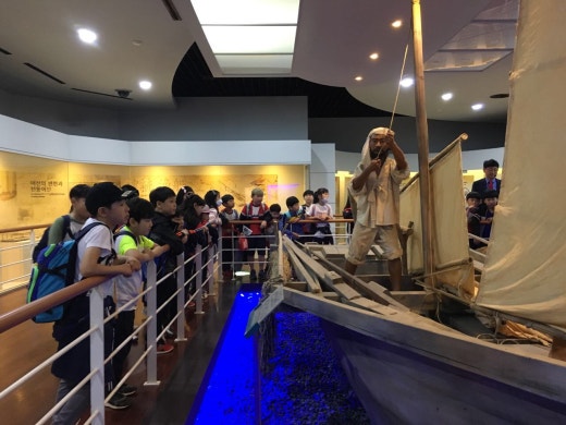 ◈어촌 민속 전시관에서는 도슨트분들의 안내에 따라 거제의 인물, 입체지도, 옛 거제 사람들의 생활 모습, 식생활, 어촌 활동, 굴을 양식하는 모습, 바닷속에 사는 해양 생물들을 눈으로 직접 볼 수 있었습니다. ◈조선 해양 문화관에서는 바이킹, 영국, 거북선의 과거의 배들과, 매일 바로 옆에서 만들어 지는 현재의 조선과정, 배가 갖추어야 할 조건들, 프로펠러가 돌아가는 모습과 그 원리를 볼 수 있었습니다. 또한, 미래 해양 산업의 모습과 해양개발의 필요성을 알 수 있었습니다. 마지막으로 학생들이 가장 좋아했던, 전시관에 도착했을 때 부터 언제 보냐고 물어보던, 의자가 흔들리고 바람도 나오는 4D영상을 통해 미래 해양도시에 대한 꿈과 바닷속 생명체들, 심해 탐사에 대한 관심을 가질 수 있었습니다.