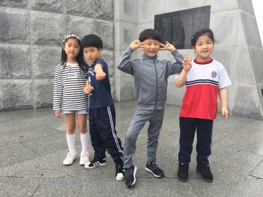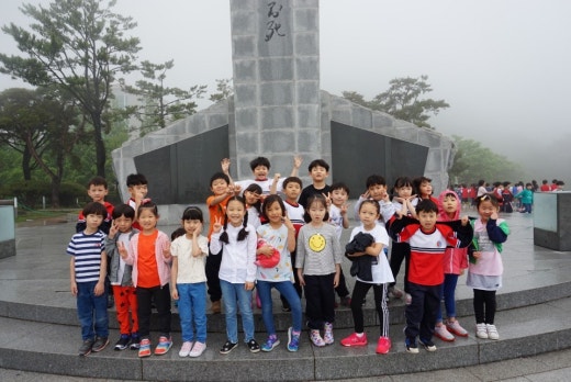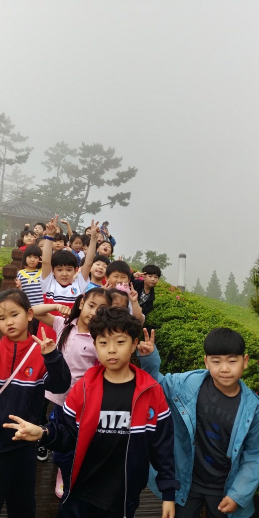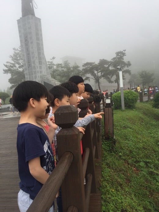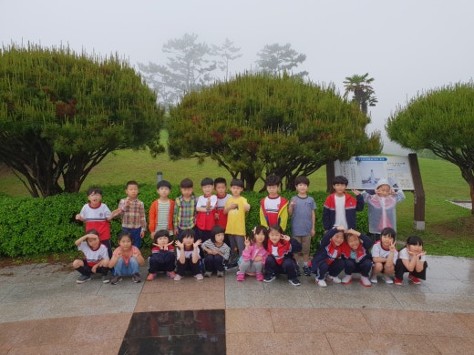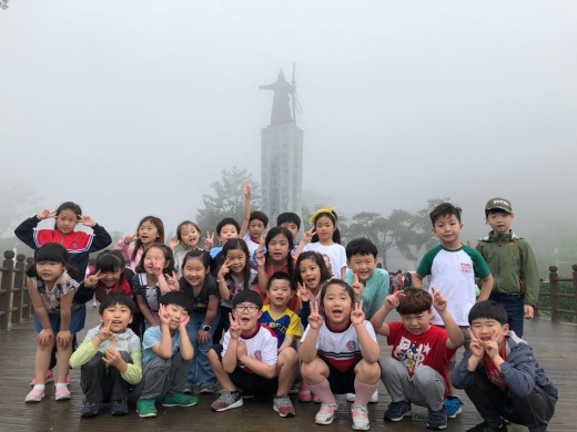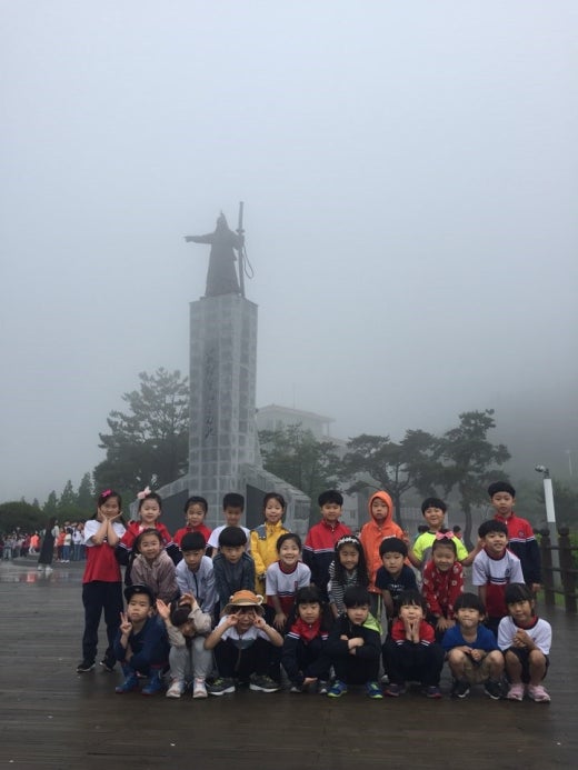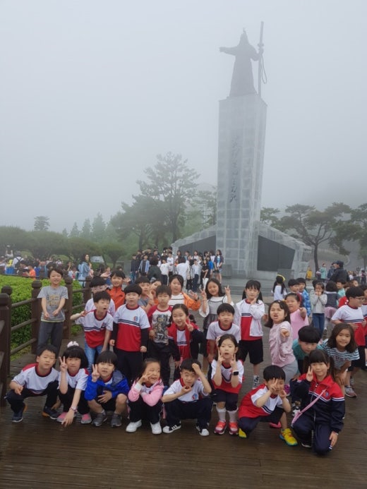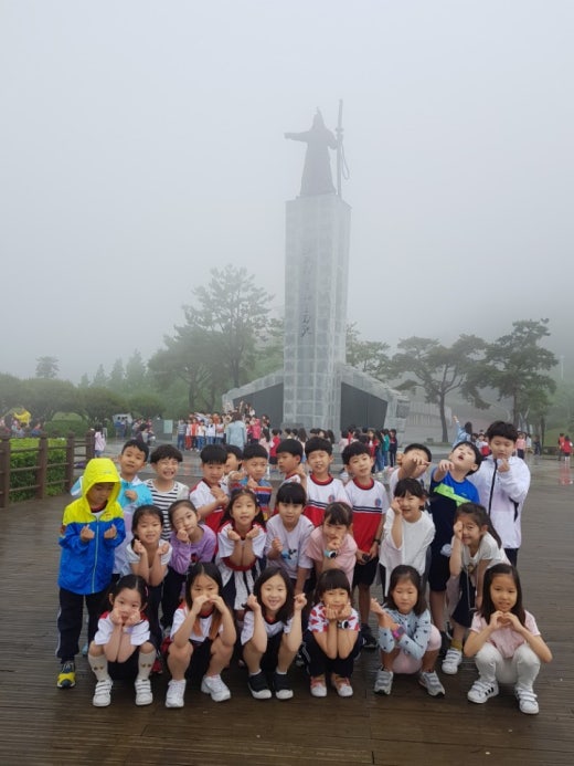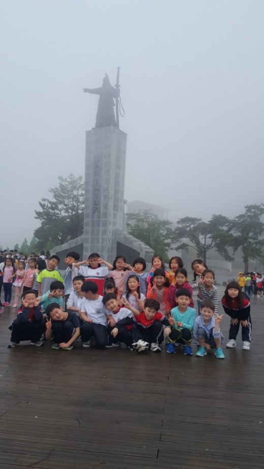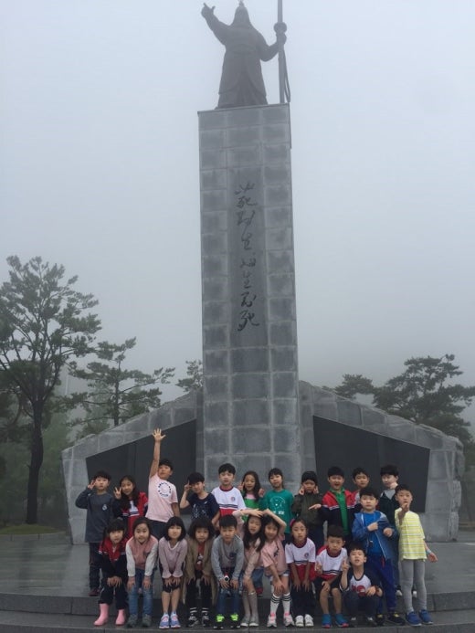 -이순신 공원에 도착하니 거짓말처럼 비가 잠시 그쳐 서둘러 오르막 위 기념동상까지 올라갔다 왔습니다. 안개가 자욱이 낀 운치있는 풍경을 배경으로 사진을 찍고 시간을 보내다 보니 다시 비가 내리기 시작해 아이들과 급하게 버스로 돌아왔습니다. 돌아오는 길에 조금 비를 맞기도 했지만 아이들에게는 그마저도 즐거운 경험이 된 것 같았습니다.