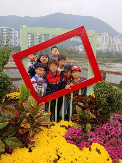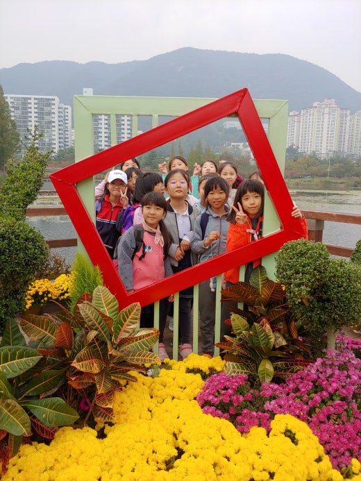 스케이트를 타고 바로 옆 연지공원에서 점심을 먹으며 놀이시간을 가졌습니다. 때마침 국화로 장식된 연지공원에서사진도 찍고 자유롭게 뛰어놀았습니다. 그리고 과학시간에 배운 수생식물도 관찰하며 알차게 마무리하였습니다.