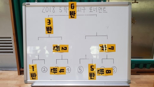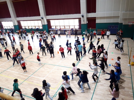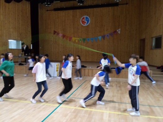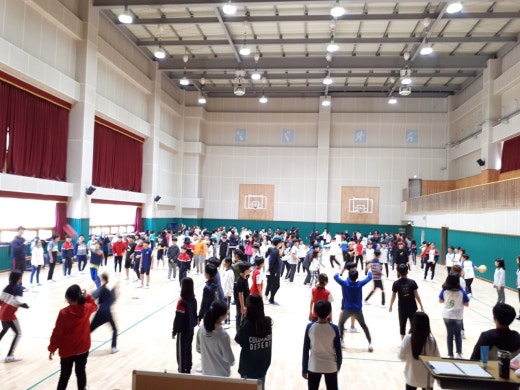 줄넘기 및 피구 토너먼트 체육회를 실시하였습니다. 먼저 1학기부터 스포츠클럽 시간마다 연습한 4도약 줄넘기 대결이 있었습니다. 3분 동안 2회 실시 후 합계 점수로 순위를 정하는 방식으로 진행되었습니다. 피구 토너먼트는 반 대표가 공번호를 뽑아 상대팀을 결정한 후 토너먼트 식으로 대결하였습니다. 우승을 위한 각 반 학생들의 열정이 대단했습니다.