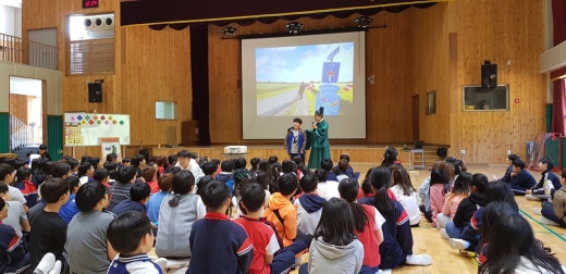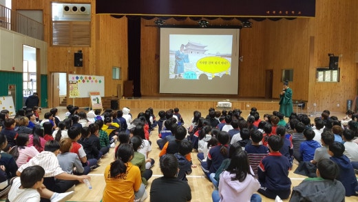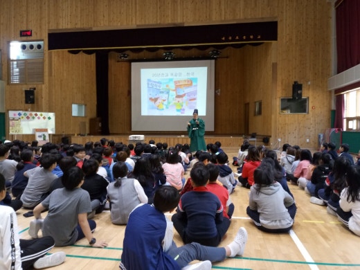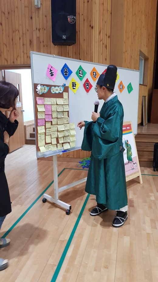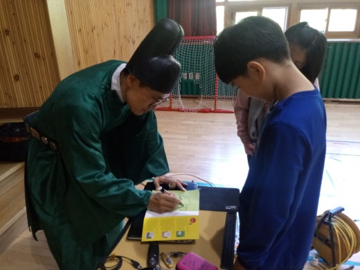 송용진 작가님는 강연 시작 전 내관 복장으로 등장하여 학생들의 관심을 끌었습니다. 학생들은 쏭내관의 재치 있는 입담과 몸짓에 강연 내내 얼굴에 웃음이 떠나질 않았고, 빛나는 눈빛으로 작가의 말을 경청하며 알찬 시간을 보냈습니다.