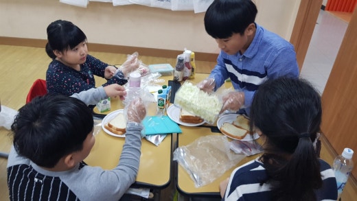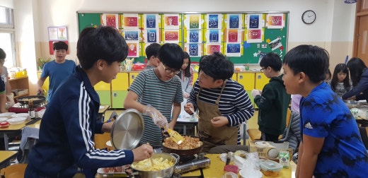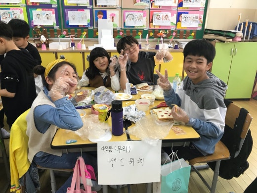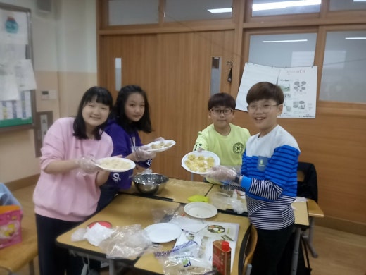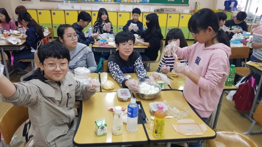 인절미, 샌드위치, 주먹밥, 부대찌개 등 각 학급과 모둠의 특색이 담긴 음식을 친구들과 함께 만들고 나누어먹는 활동을 하였습니다. 요리 경연 대회를 열어 다른 반 담임선생님을 심사위원으로 모시는 학급도 있었습니다. 서툰 솜씨였지만 최선을 다하며 친구들과 함께 웃는 모습이 보기 좋았습니다.