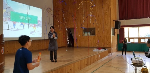 교장선생님의 축사와 개회선언으로 체육대회의 막을 열고 플로우볼, 꾸미기체조, 릴레이 세가지 종목이 실시되었습니다. 즐거운 경기들을 통해 아이들이 마음껏 자신의 기량을 뽐냈던 뜻 깊은 시간이었습니다.