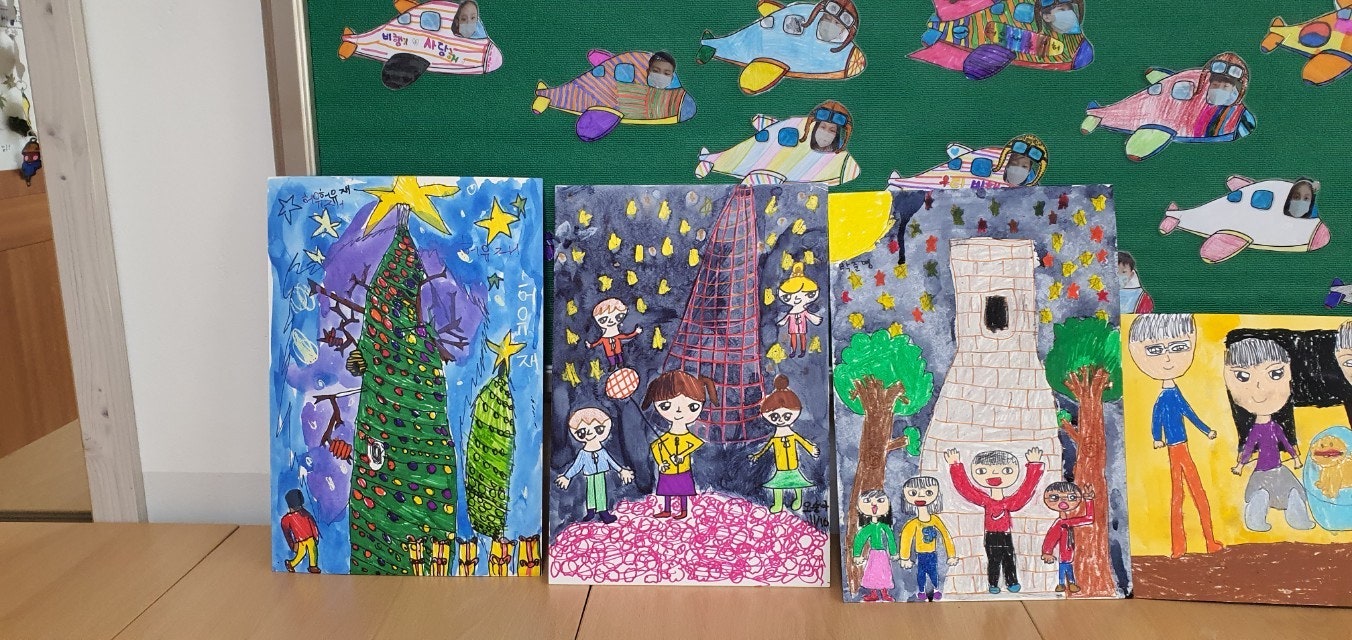 10) 작은 간이 이젤에 올려 작품전시회의 시간을 갖는다.