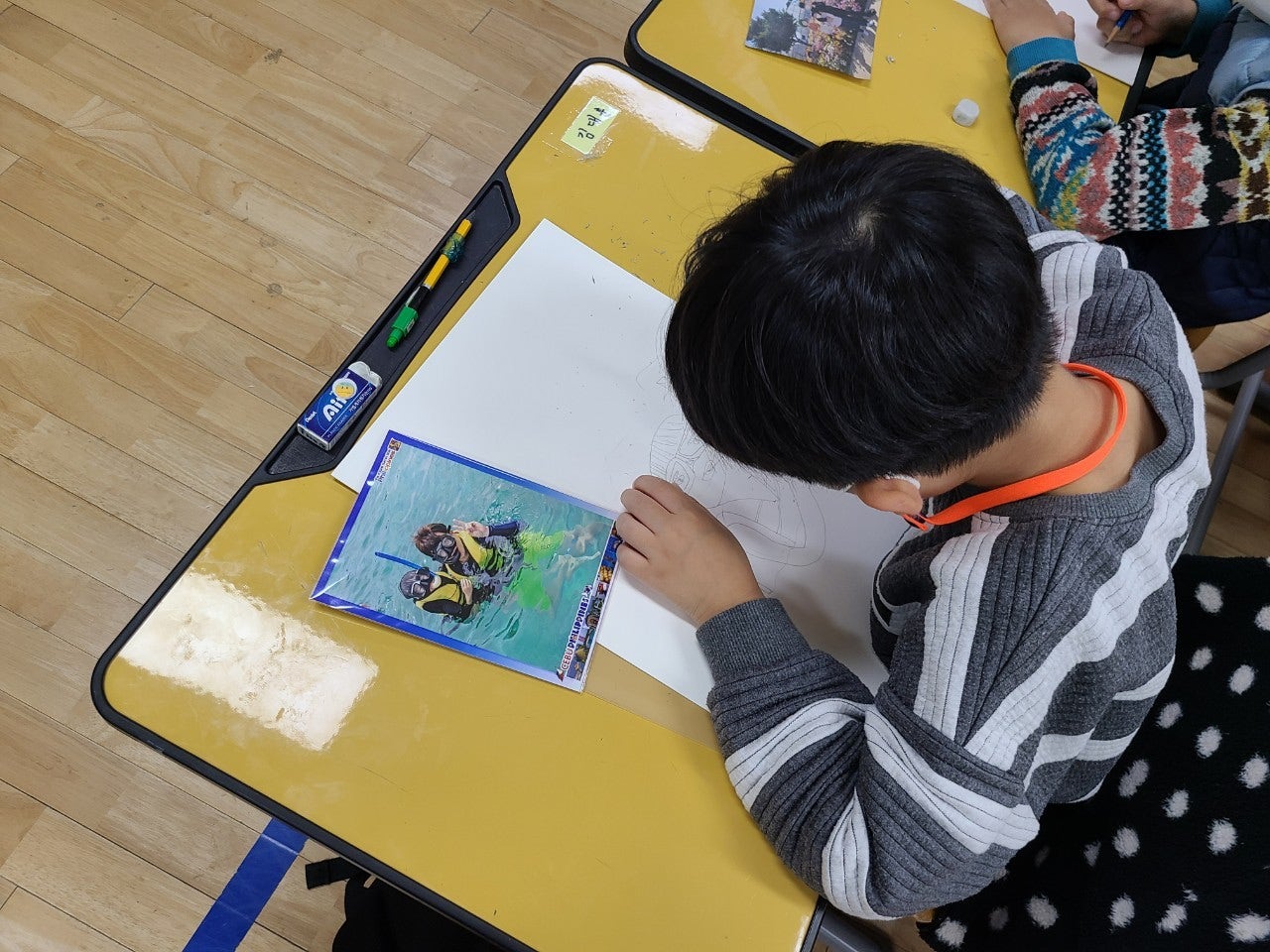 문화 예술 감성 교육인 ‘행복한 경험 그리기’ 수업은 생활하면서 자신이 가장 행복했던 경험을 떠올리는 일부터 시작됩니다. 가족이나 친구와 경험했던 기억에 남는 행복한 경험을 다양한 재료를 활용하여 창의적으로 표현하는 수업으로 학생들이 즐겁게 참여하는 모습이 참 보기 좋았습니다. 행복한 경험에서 느낀 감정을 그림으로 나타내는 기초를 다져주는 교육입니다.