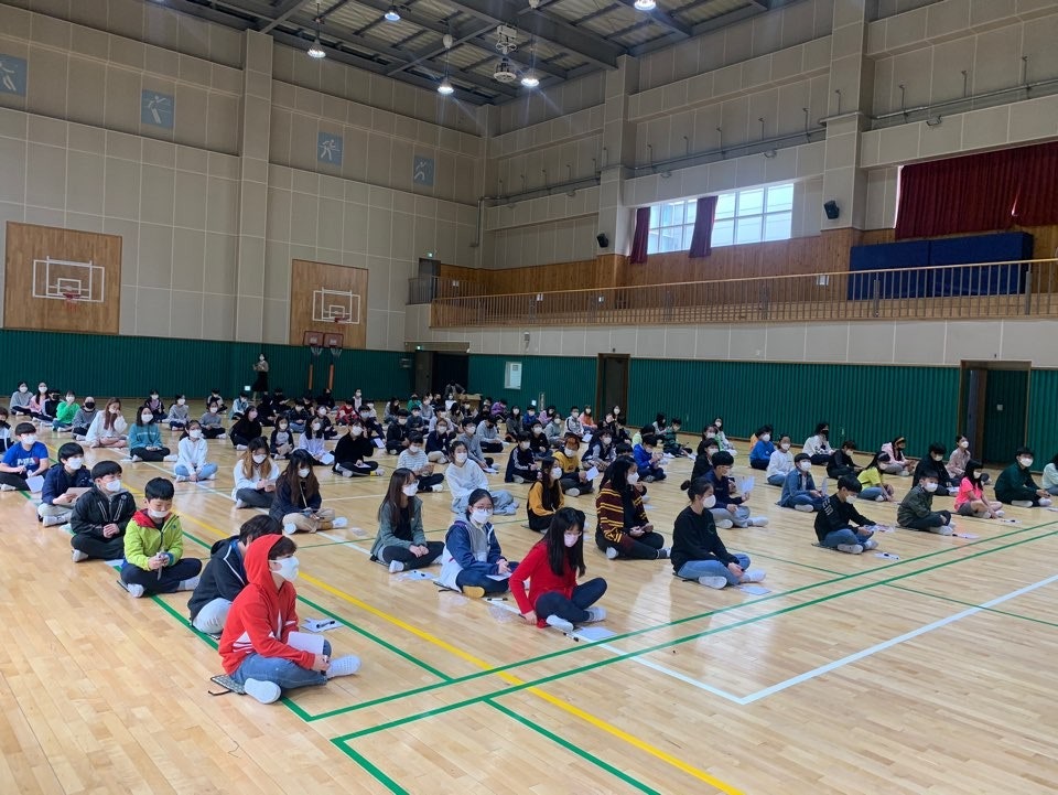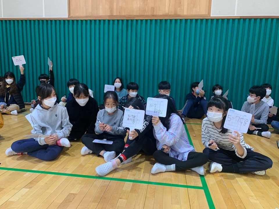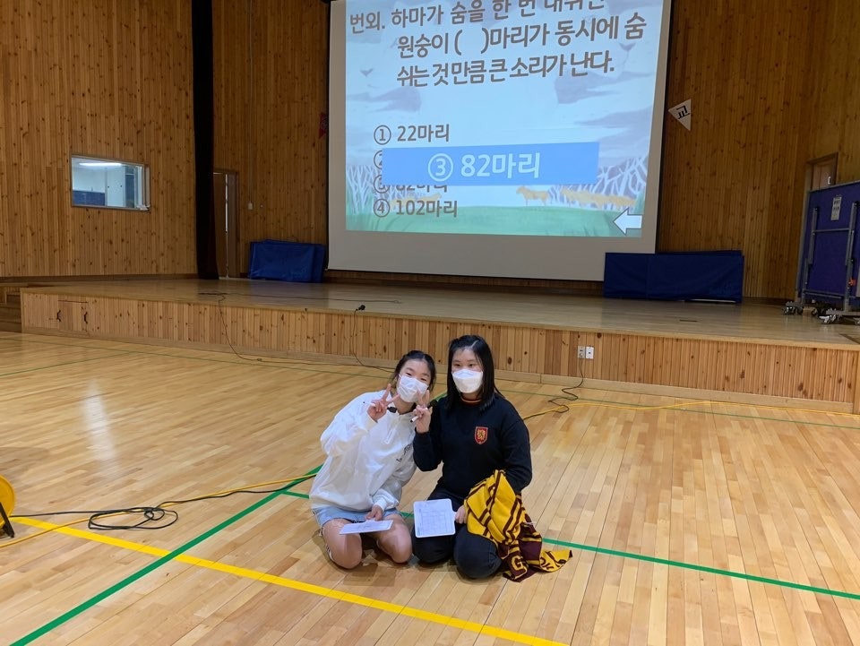 - 『푸른사자 와니니』의 내용을 활용해 여러 문제를 만들어 체육관에서 골든벨 행사를 진행했습니다. 4반씩 같이 참여하였습니다.