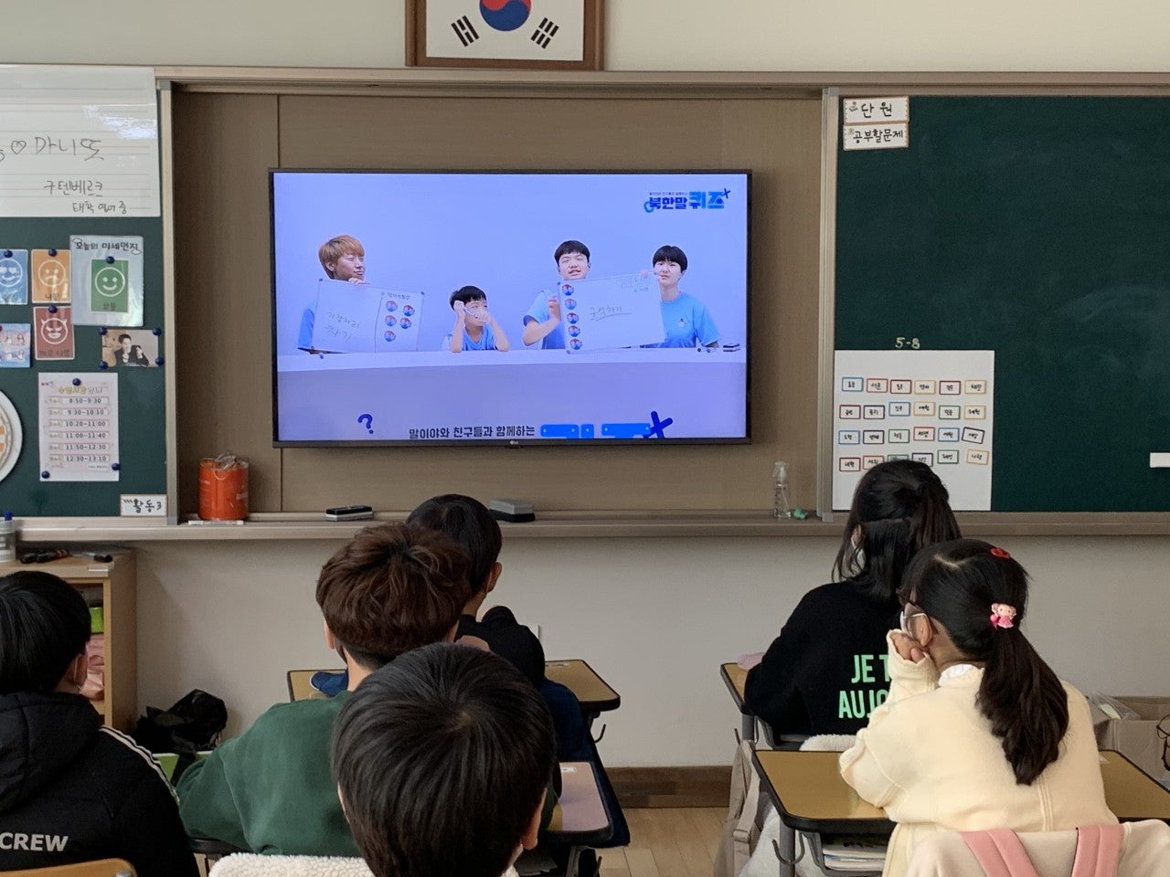 - 각 반에서 PPT 및 영상 자료를 활용하여 통일과 관련된 교육을 했습니다. 북한말과 우리나라말의 다른점을 알아보고 현재의 북한 상황 등을 사진, 그림을 통해 알아보았습니다. 마지막으로 통일이 되면 어떻게 될지 학생들과 이야기 나누는 시간을 가졌습니다.