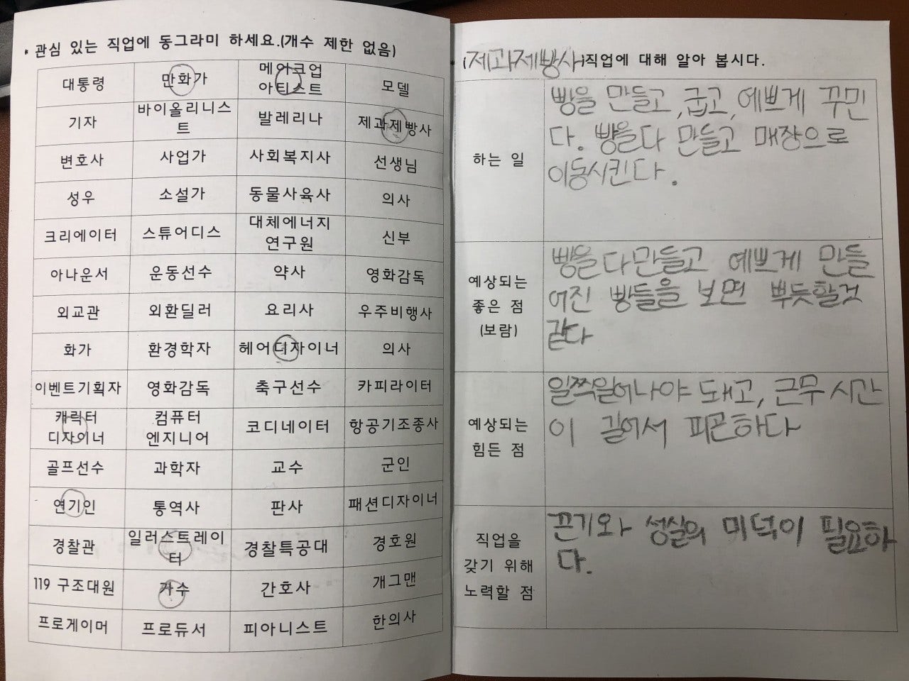 - 학생들에게 관심있는 직업군을 조사하여 그 직업에 대해 영상을 통해 알아보고, 그 직업인이 되기위해 어떤 준비와 마음가짐이 필요한 지 이야기 나누었습니다.