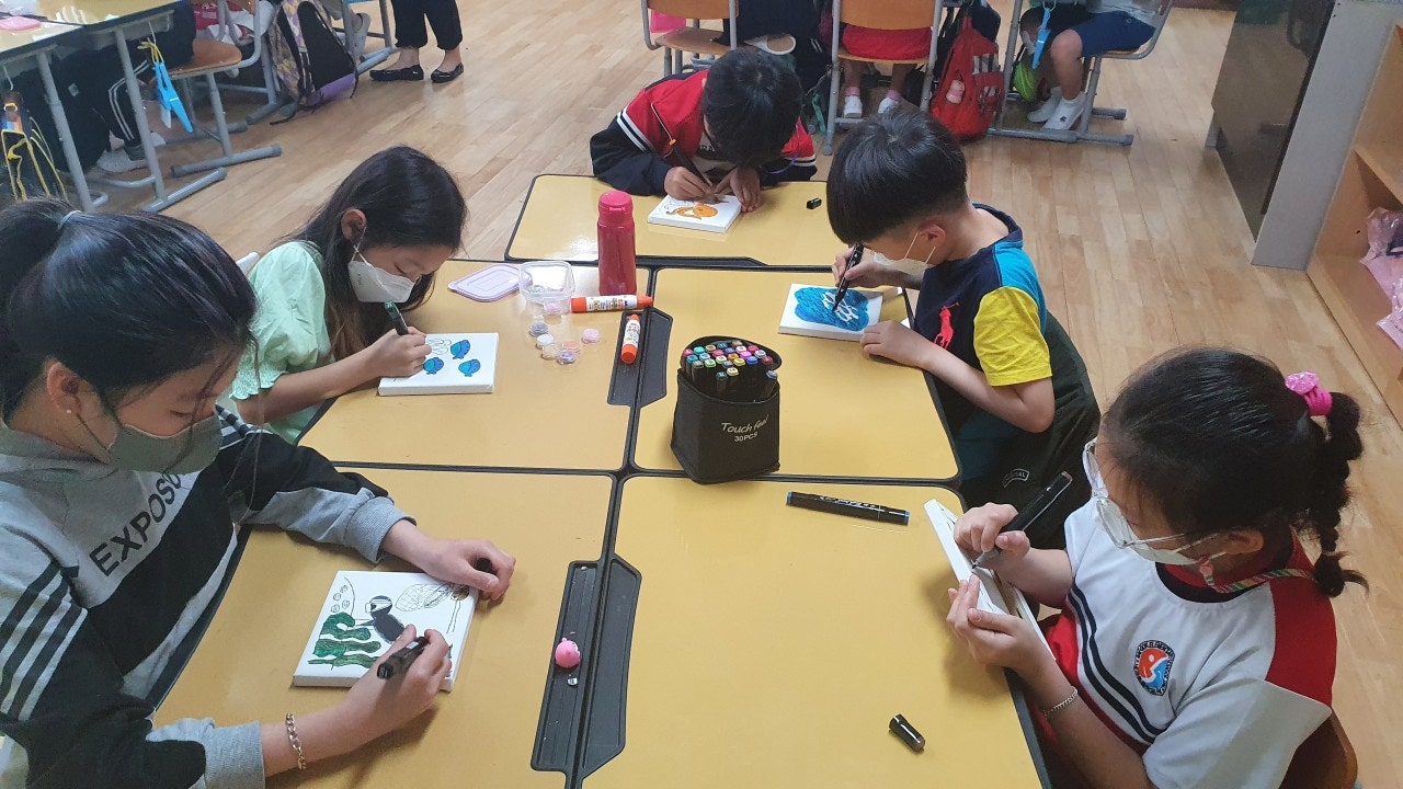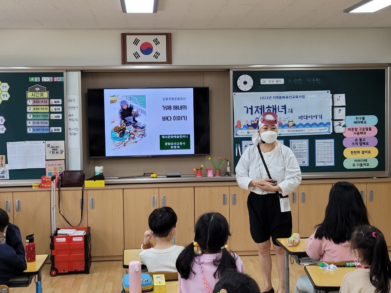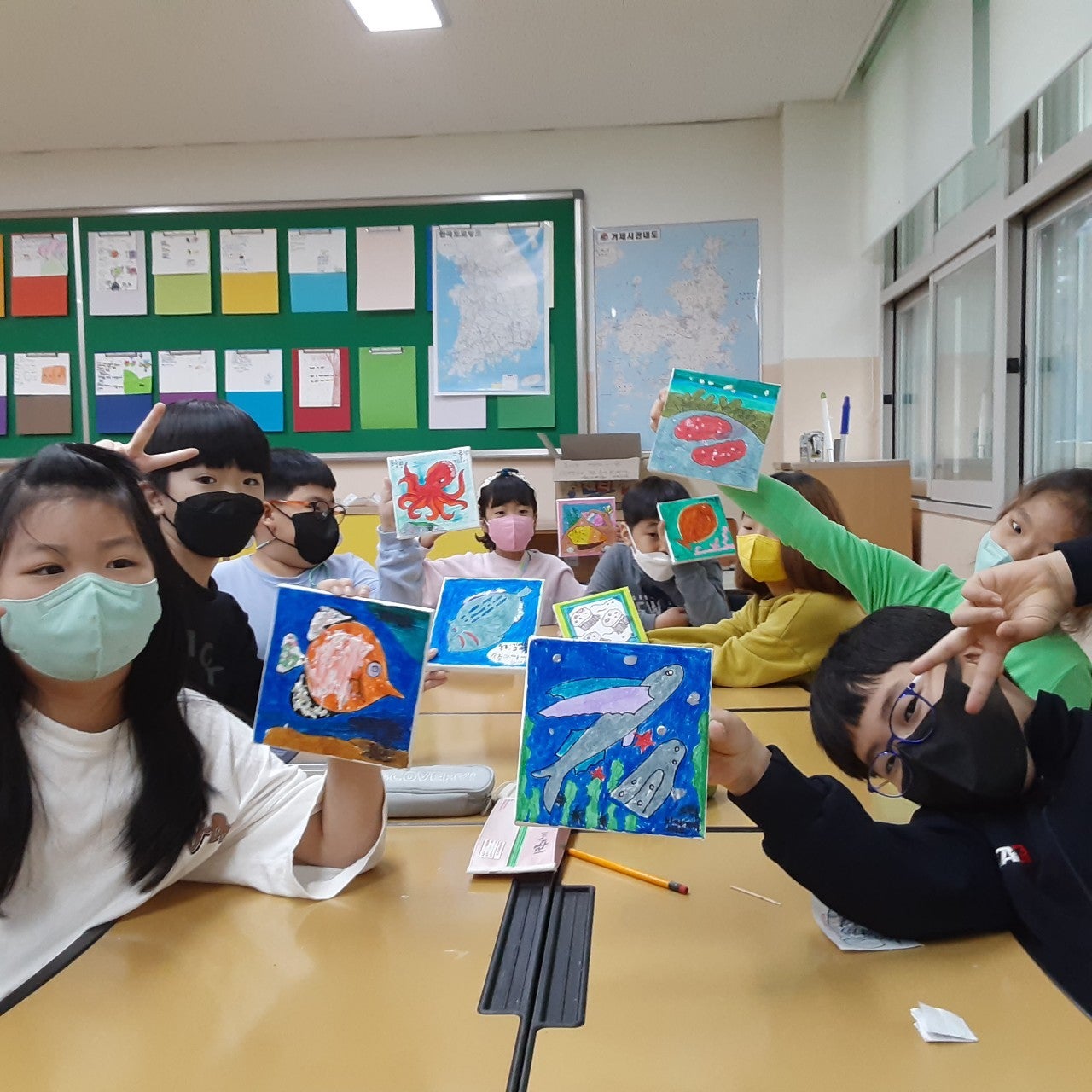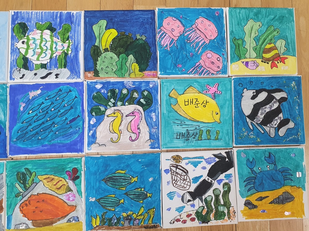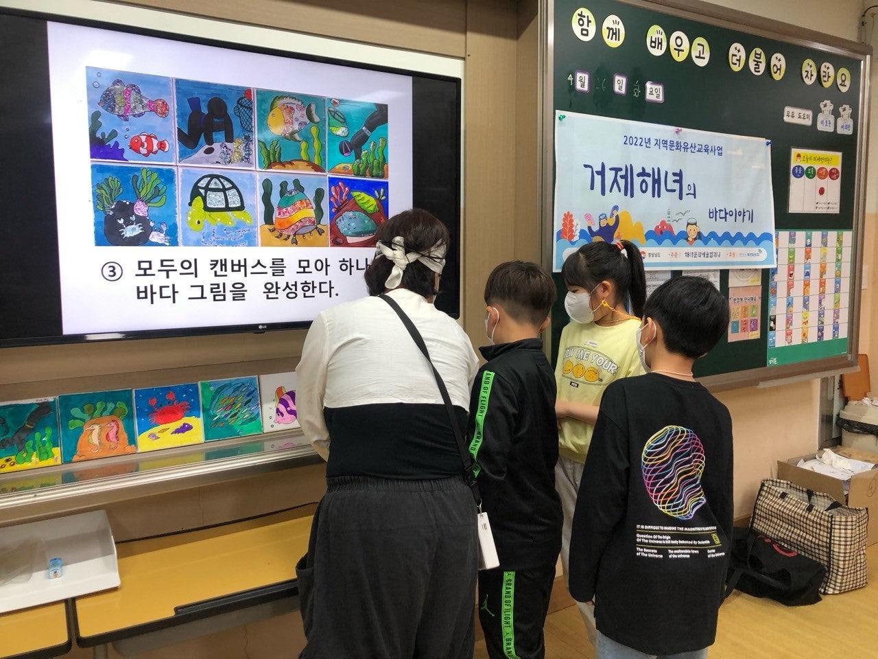 우리 고장 거제의 문화유산인 '해녀'에 대해 알아봄으로써 거제의 고유한 문화유산의 가치와 소중함을 느낄 수 있는 시간이었습니다. 또한 학생들이 바닷 속의 다양한 모습을 색칠하고 자개를 붙여 꾸미면서 바다의 환경을 깨끗하게 지키고 보존해야겠다는 마음도 가질 수 있었습니다.