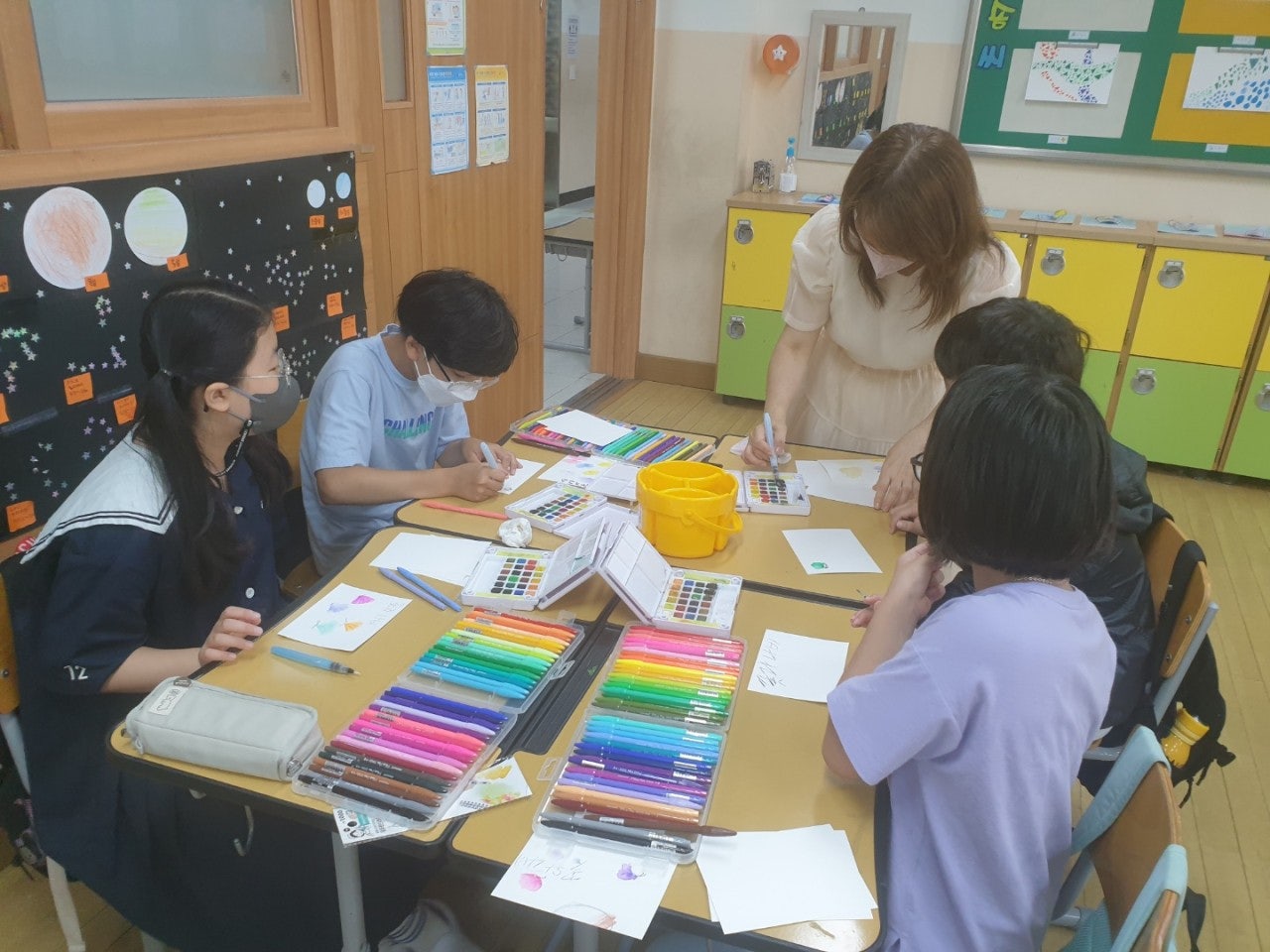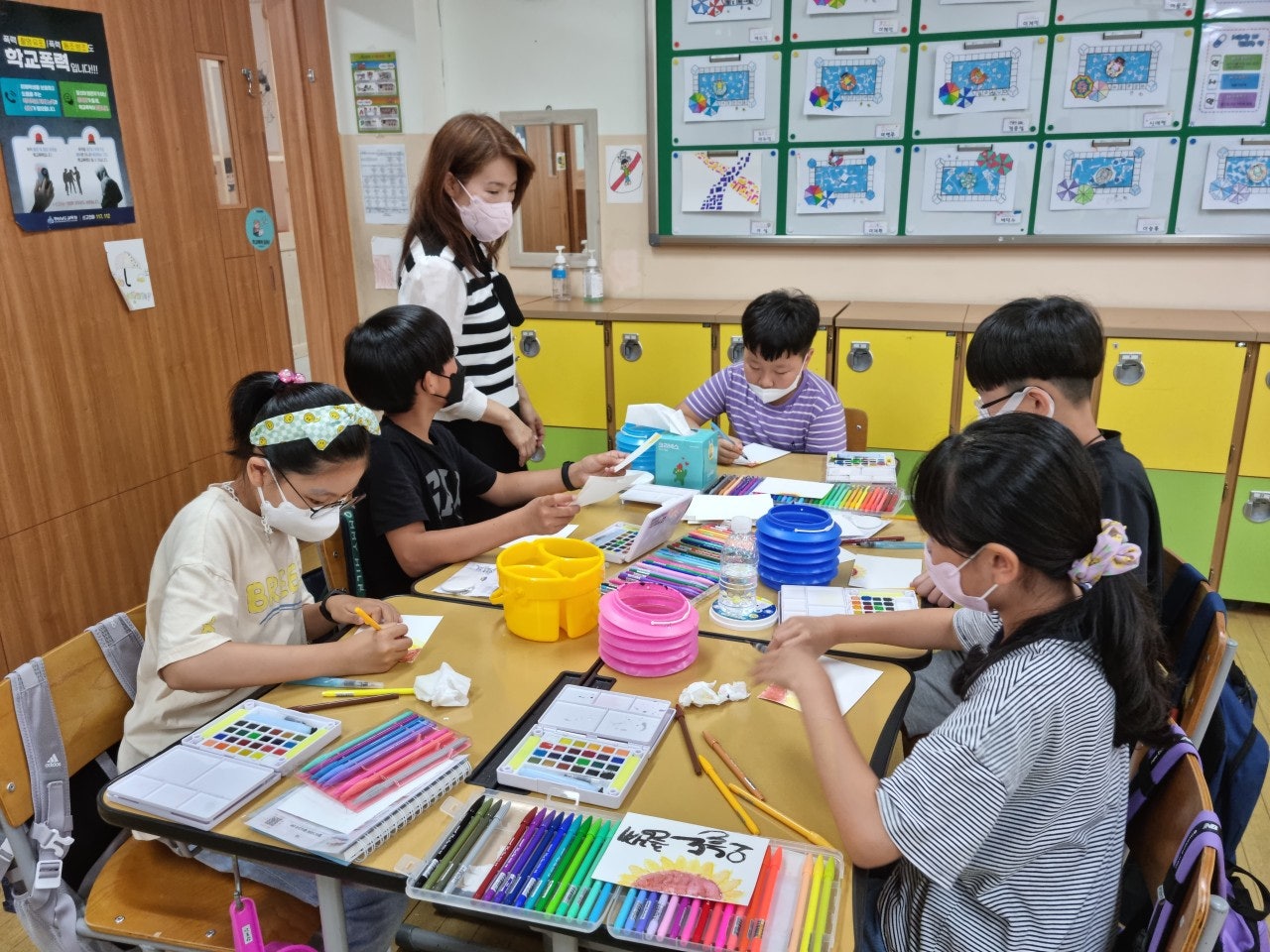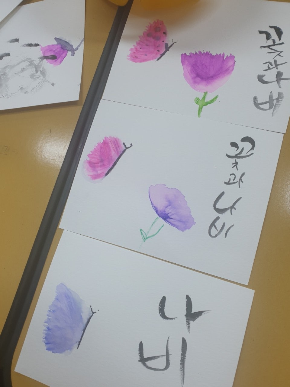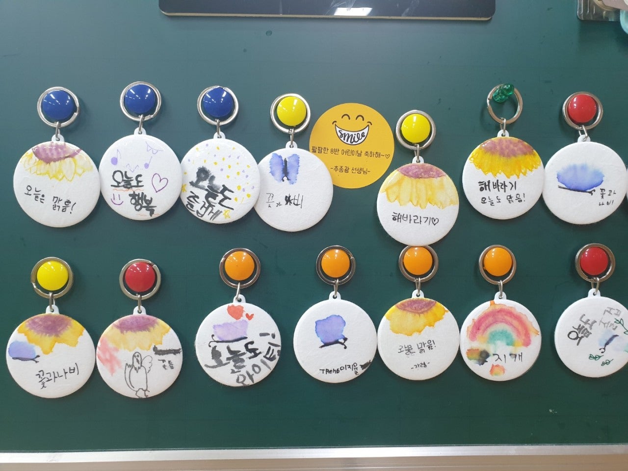 6월 20일부터 캘리그라피 수업을 하고 있습니다. 4학년때 해 봤던 수업이라 더 몰입해서 진지하게 임하는 모습이었습니다. 자신만의 열쇠고리 만들어서 기분좋게 가방에 달고 집으로 돌아갔답니다.