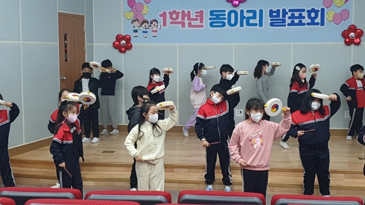 3. 주요내용: 2학기 동안 국악 동아리 활동으로 연마한 소고춤을 다른 반 친구들 앞에서 공연하는 기회를 가졌습니다. 요즘 급증하는 감염병 등으로 인해 학부모 초청은 하지 못했지만 동영상 촬영본을 각 학급 밴드에 업로드하여 전반적인 발표회 분위기를 가정에서 간접적으로 느낄 수 있도록 운영하였습니다.