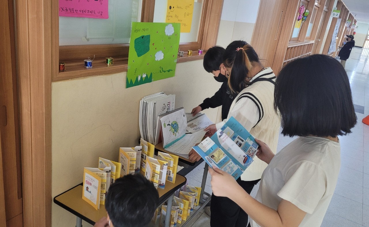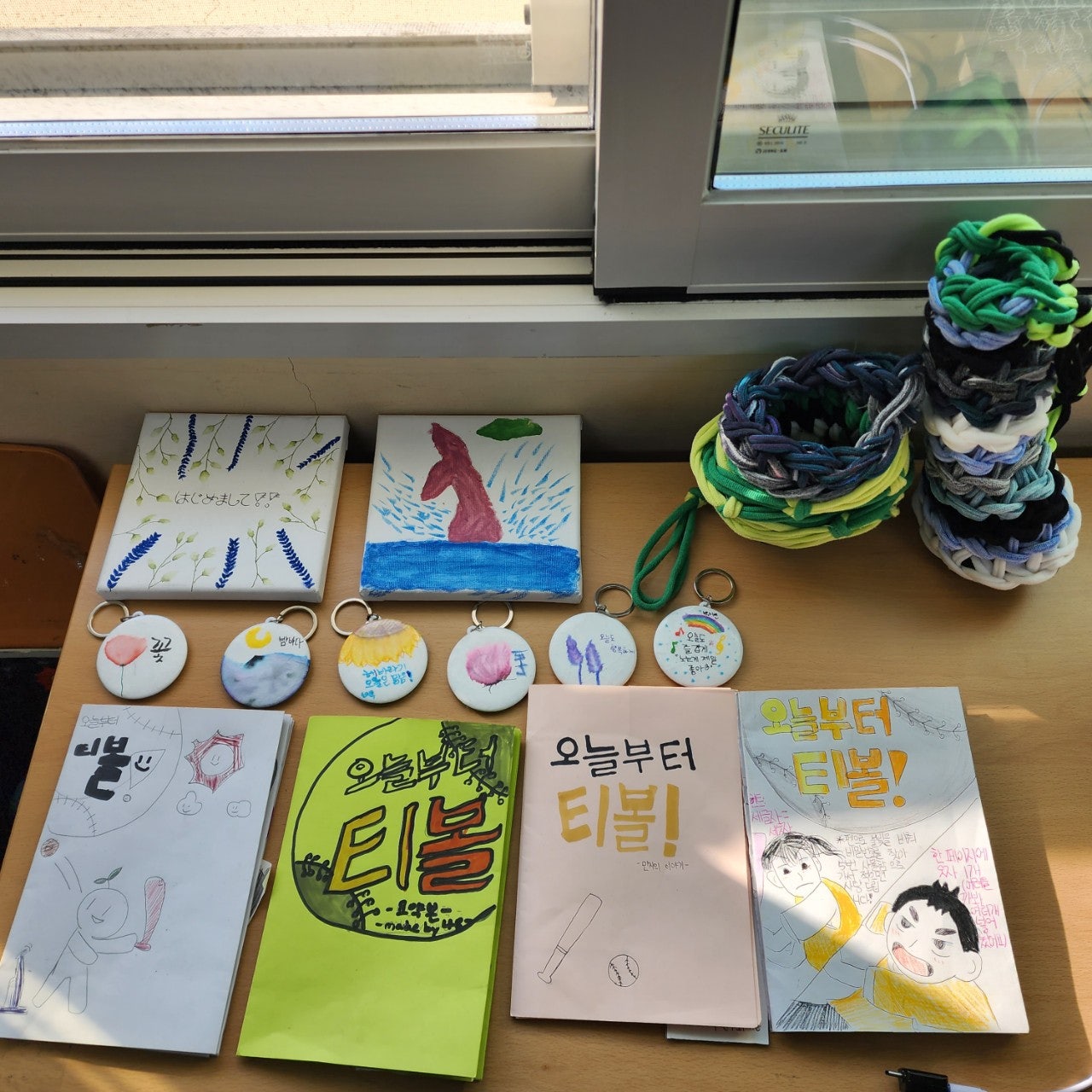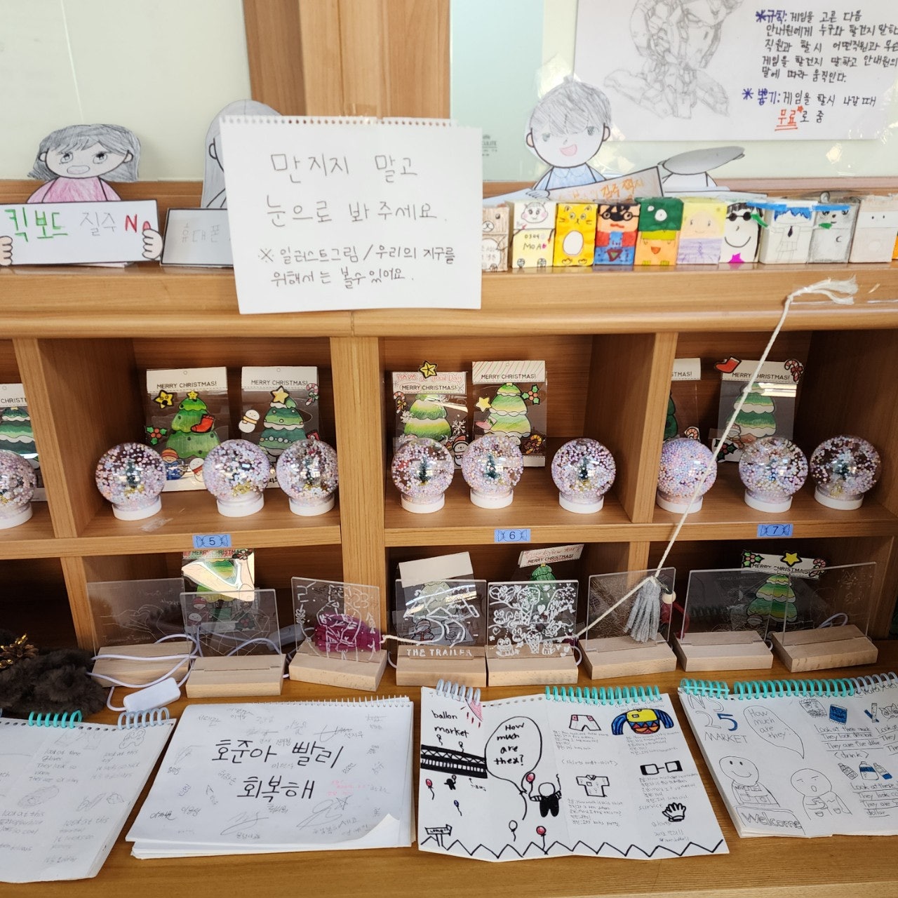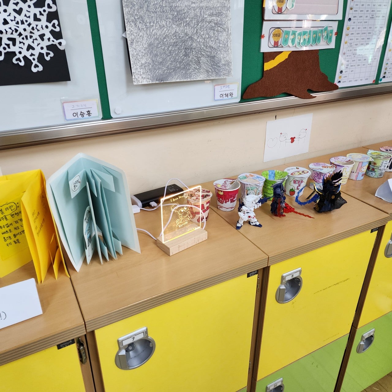 5학년 동아리 활동이었던 일러스트 동아리 활동 결과물을 전시회로 진행하고 서로의 결과물을 나누는 시간을 가졌습니다.