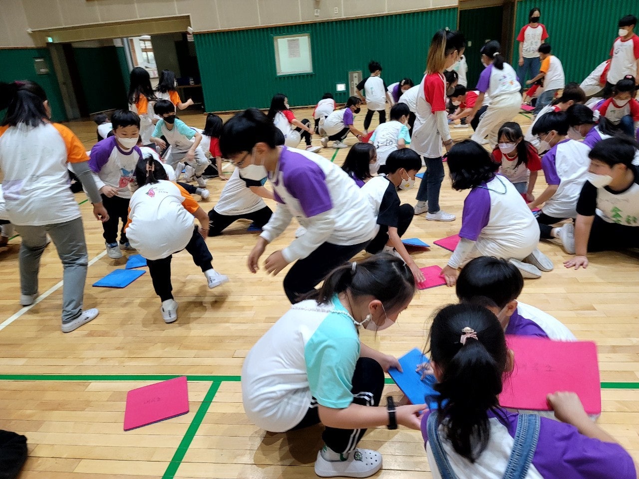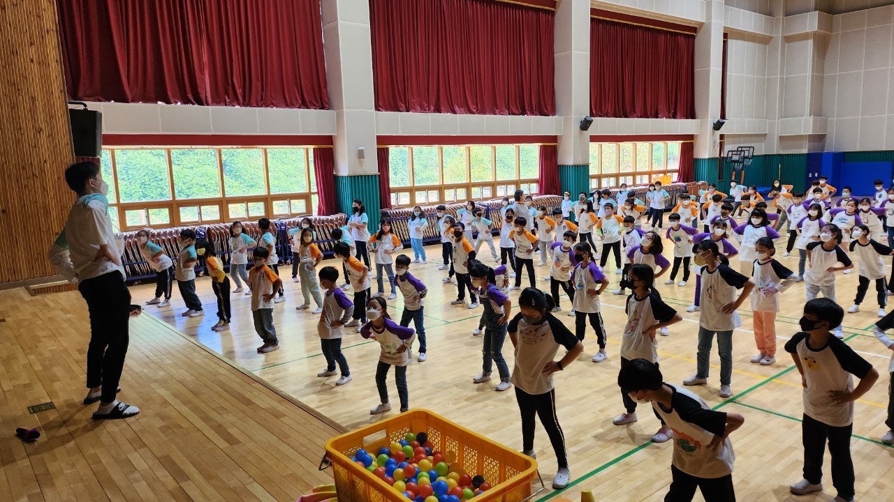 -판 뒤집기, 공 집어 던지기, 이어달리기 경기를 함께 하며 친구들과 즐거운 시간을 보냈습니다.
