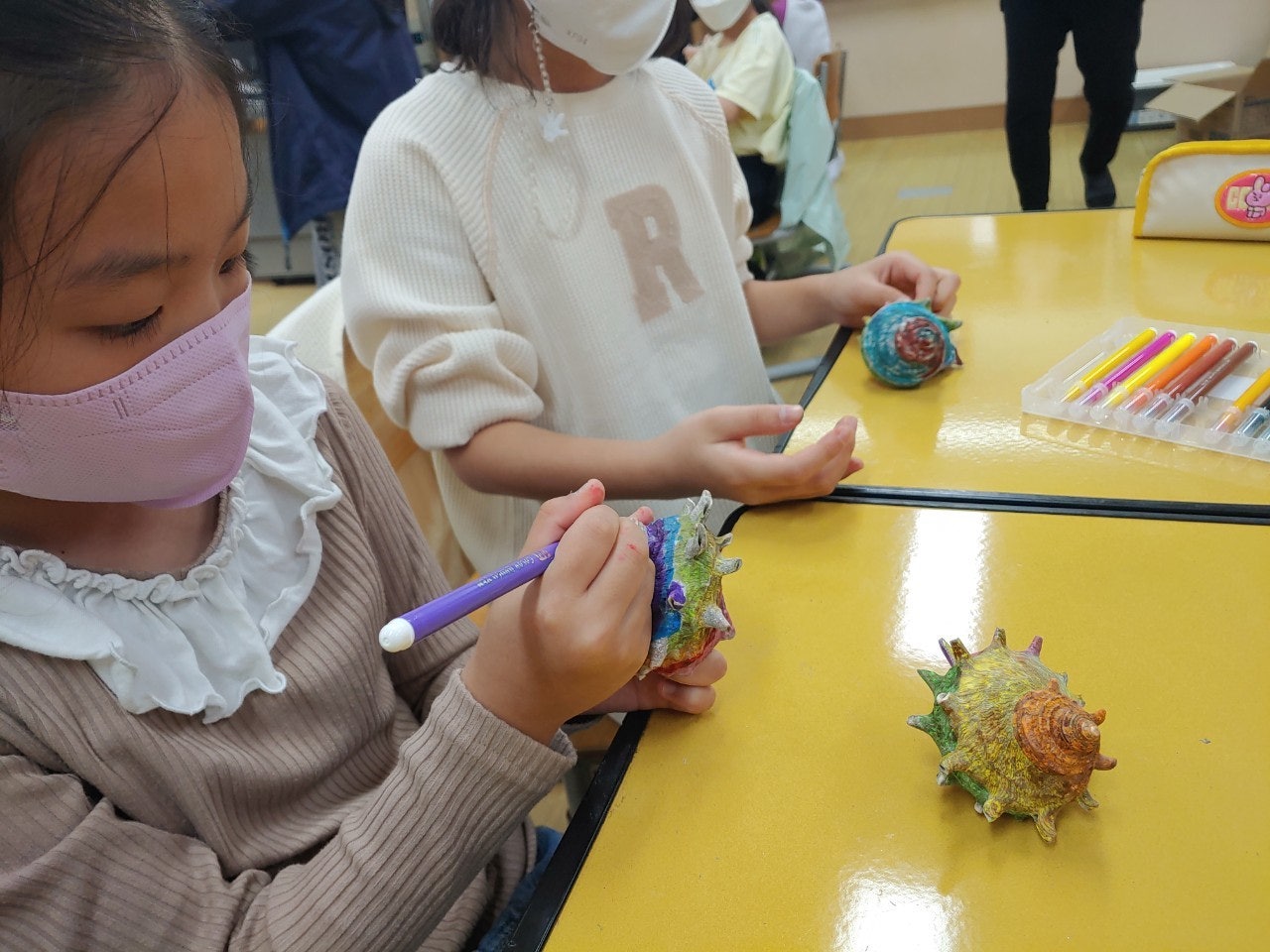 -뿔소라를 예쁘게 색칠하여 나만의 작은 화분을 만들어보았습니다.