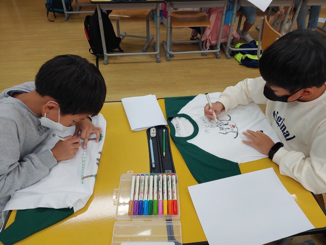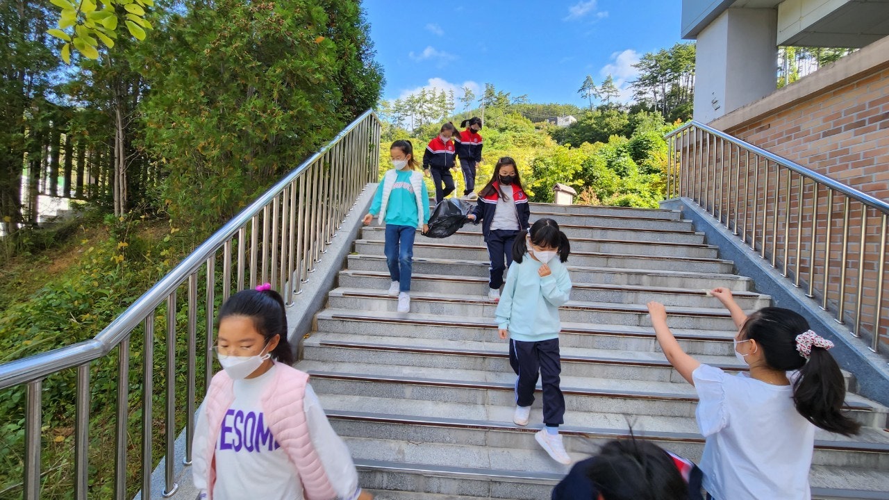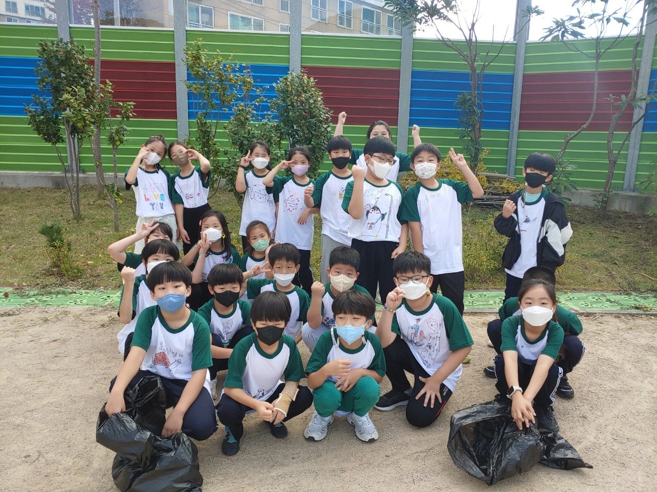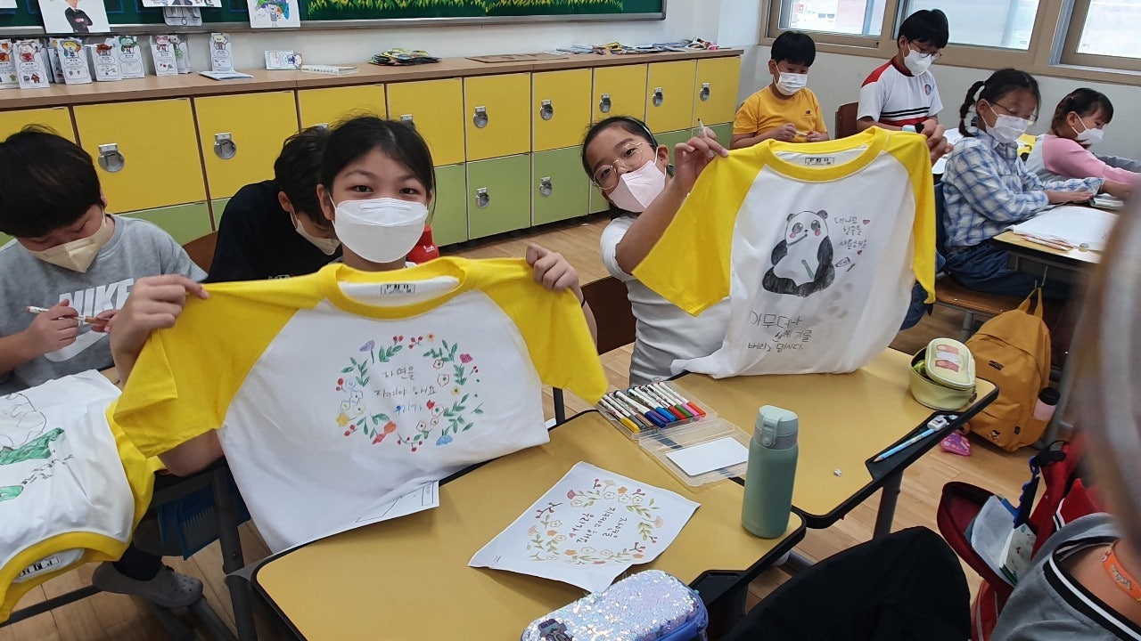 -티셔츠에 환경을 보호할 수 있는 다양한 실천 방법을 그려보았고, 줍깅 활동도 해보았습니다.