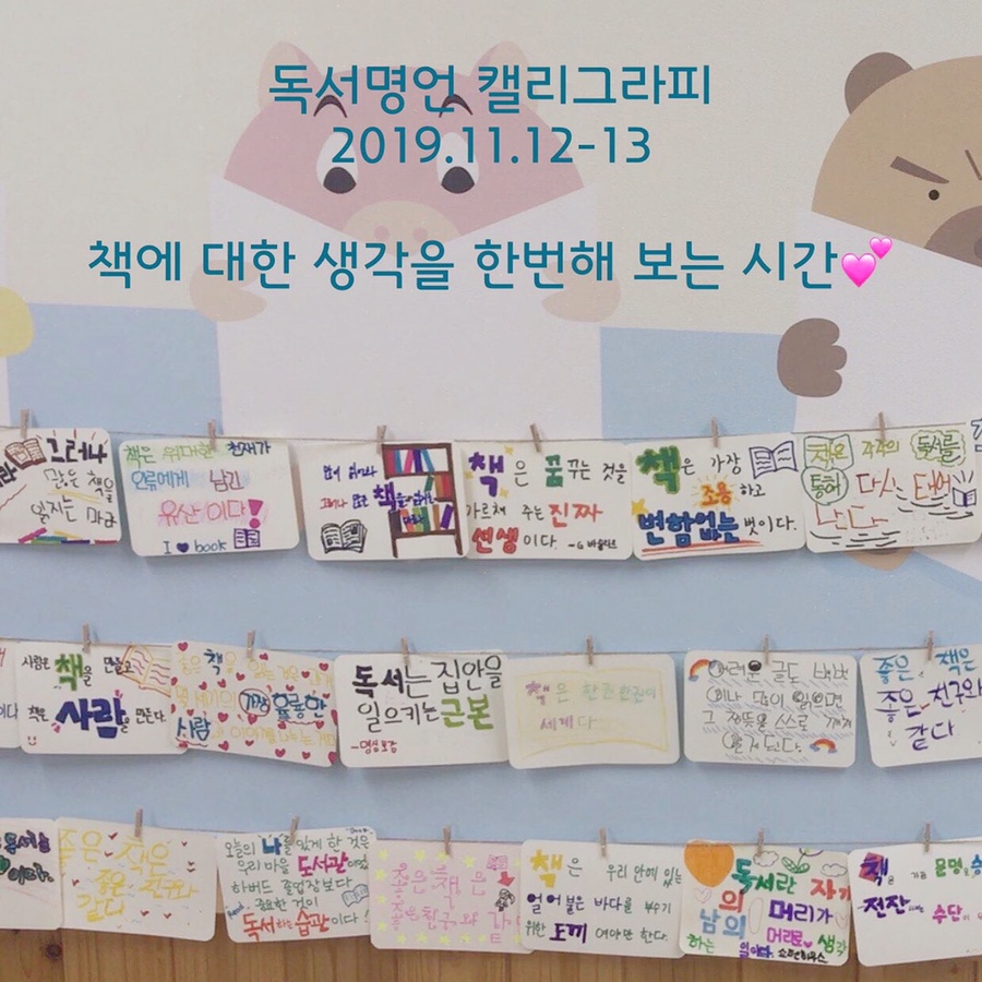 11. 12-13 : 독서명언 캘리그라피(도서실 내부와 복도에 전시)