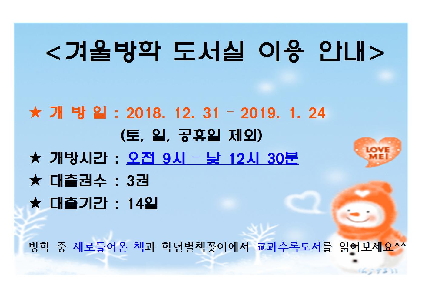 * 겨울방학 중 도서실 이용을 알려드립니다.