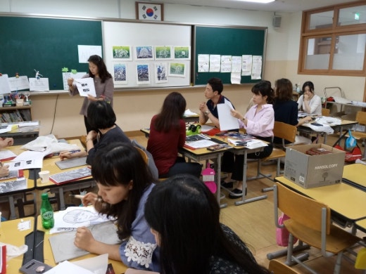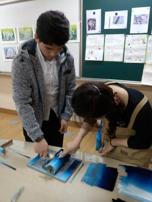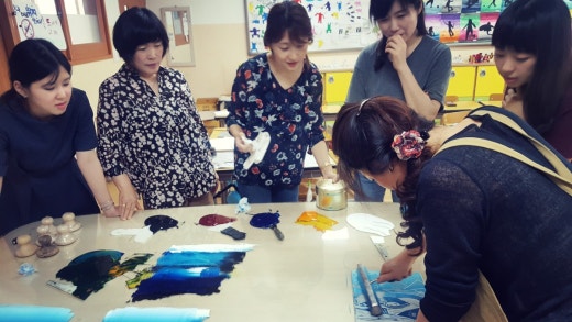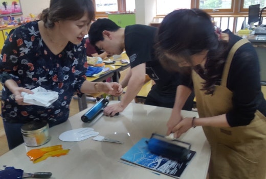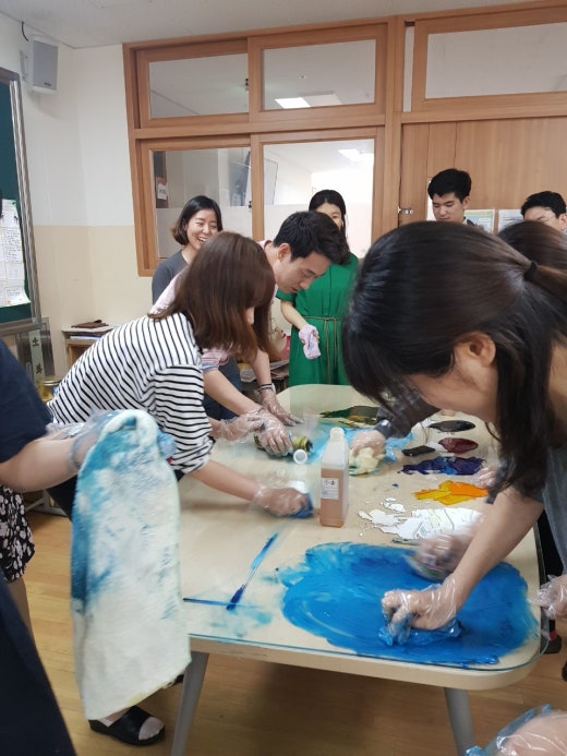 3. 블렌딩; 교사 연수에서는 다양한 색을 섞어 사용했으나 아이들 활동할땐 2가지 정도 색을 쓰는 것이 좋을 듯;; 시간이 너무 많이 걸림