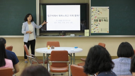 교육과정-수업-평가-기록의 일체화, 과정중심 평가, 성장과 발달을 돕는 평가를 확실히 알아보자, 해서 참교육원격연수원의 '초등평가혁신' 원격연수 15시간(2015년 형)도 60명의 선생님께서 들으셨고, 인강보다는 실물을 보자, 해서 초등평가혁신 연수의 슈퍼스타 한희정 선생님을 어렵사리 초대했습니다. 1부: 상대평가(선발 위주)와 절대평가(성장참조, 과정참조)의 철학적 기저 살피기 -교사의 교육과정 문해력과 교육과정 및 수업운영의 자율성을 필요조건으로 함 -인간의 성장과 발달을 보는 관점으로의 변화 -가르친 교사가 평가하고 객관성은 절대기준은 외부에 존재하지 않으며 교사가 기준이다. -학년초 진단활동을 기초로 평가계획을 세워야하며 -단계형 평가통지를 없애는 것과 다양한 통지방식 고민 -교사의 평가권 보장을 위한 행정력과 지원이 보장되어야.