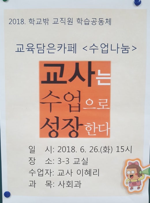 큰 결심하고 수업 나눔 해주신 3학년의 꽃 혜리 선생님, 수업 촬영 하시고 편집하신다고 고생하신 장물레 부장님, 김성탁 연구 부장님, 함께 수업 디자인 해주신 수석 선생님과 동료 교사 선생님들, 교육 담은 카페에 오셔서 수업 협의 함께 해주신 선생님들께 감사드립니다.