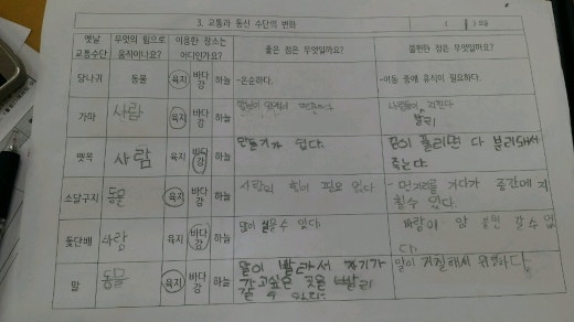 ♡적절한 학습지와 사진자료가 제시되었고 선생님의 발문을 통해 아이들이 좀 더 깊이 생각할 수 있는 기회가 주어졌다.