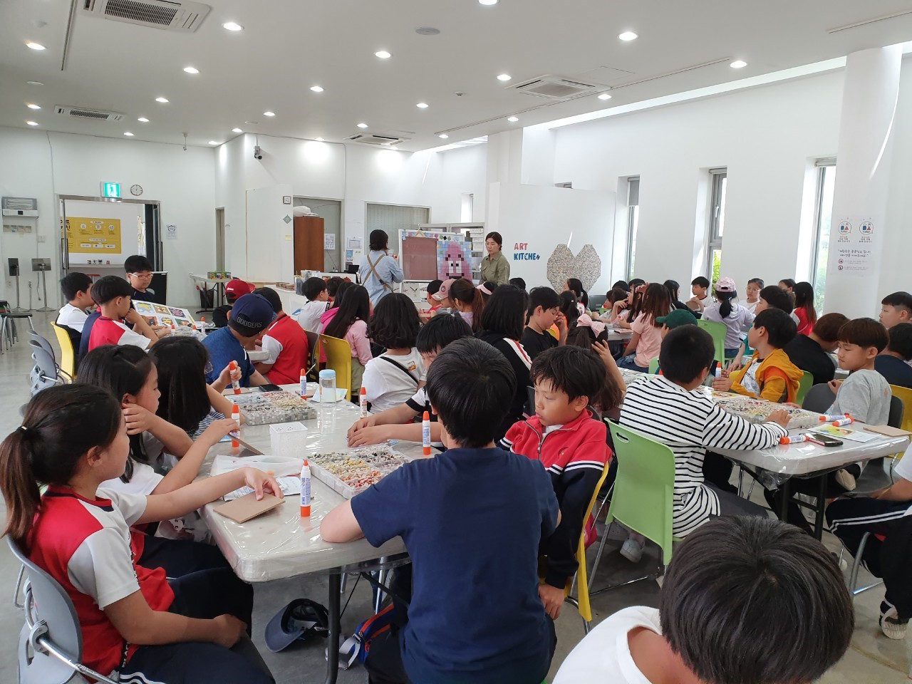 3. 일정 ▶ 미술관 둘러보며 감상활동하기 -클레이아크’를 테마로 한 도자 설치(조형) 작품 100여점 내외를 감상하고 직접 제작한 감상지에 학생들의 생각과 느낌을 표현할 수 있도록 함. ▶아트키친 체험활동 -건축과 도자를 접목한 모자이크 타일 체험 프로그램으로 10여가지 색타일을 활용하여 꾸미고 싶은 캐릭터 작품을 만들어 볼 수 있어 학생들이 흥미로워 했으며 자신의 작품에 만족도가 높았음. ▶ 미술관 주변을 둘러보며 표현활동하기