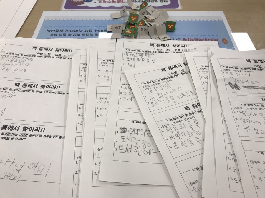 책의 부위별 명칭 이해, 책모형 열쇠고리 만들기, 책등에서 찾아라 활동이 있었습니다.