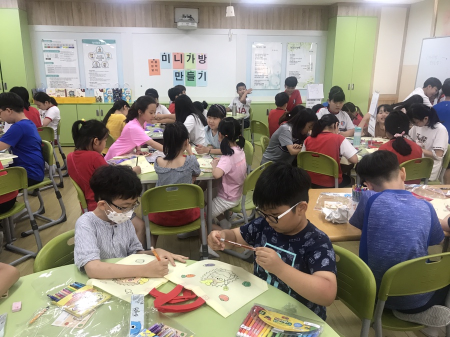 7월3일- 7월 24일까지 1학기 마무리 활동으로 부직포 미니가방만들기를 전교생을 대상(신청학생)으로 실시하였습니다.