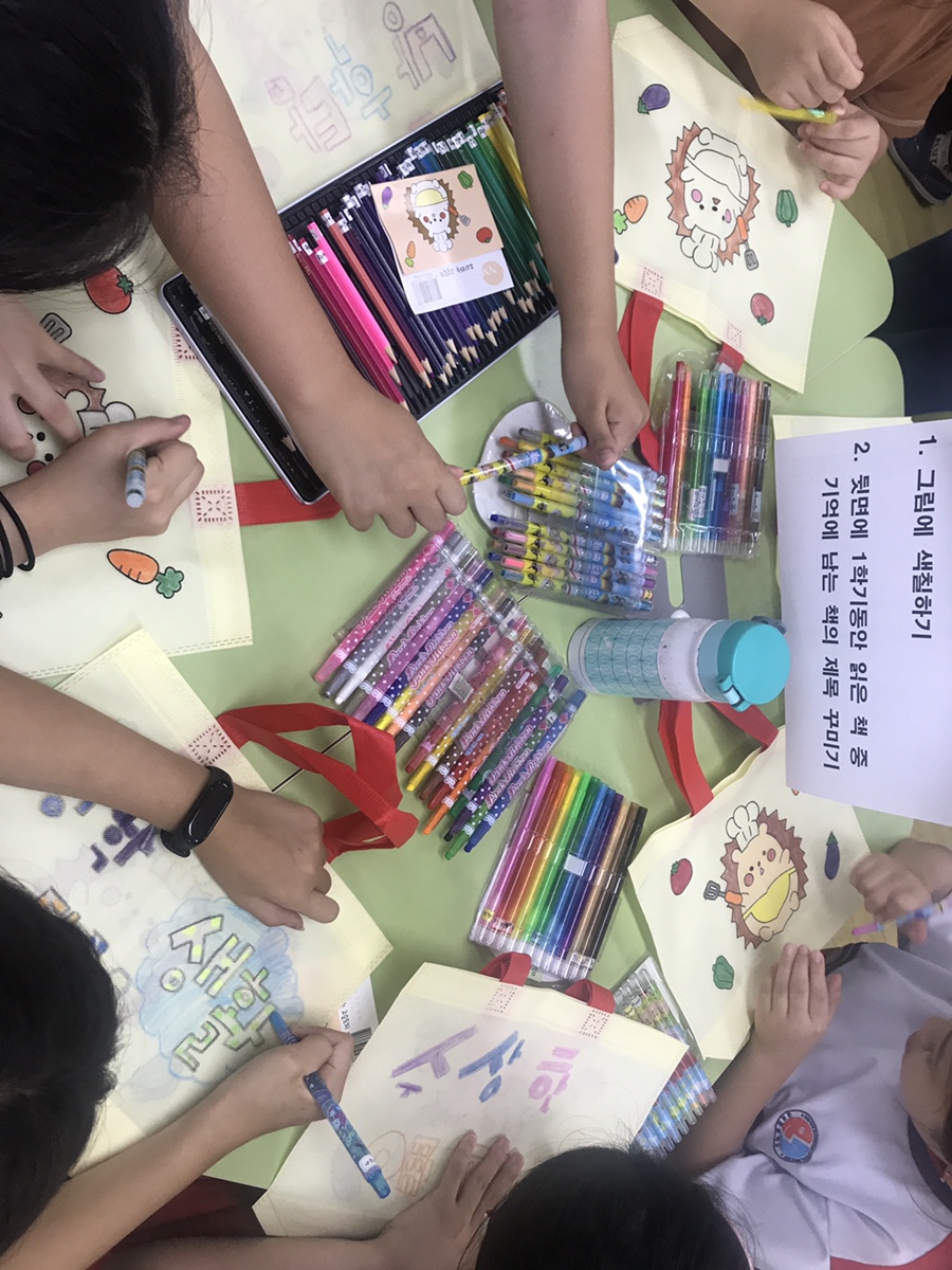 1학기에 읽었던 책 중 가장 기억에 남는 책 제목을 꾸미고 , 다른 면에는 캐릭터 그림을 색칠해보며