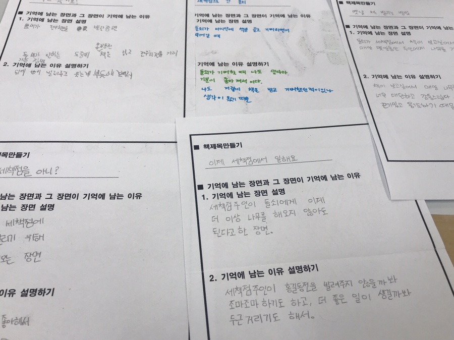 5학년 : '책 빌리러 왔어요' 그림책 감상 활동 및 오침안정법 옛책 만들기