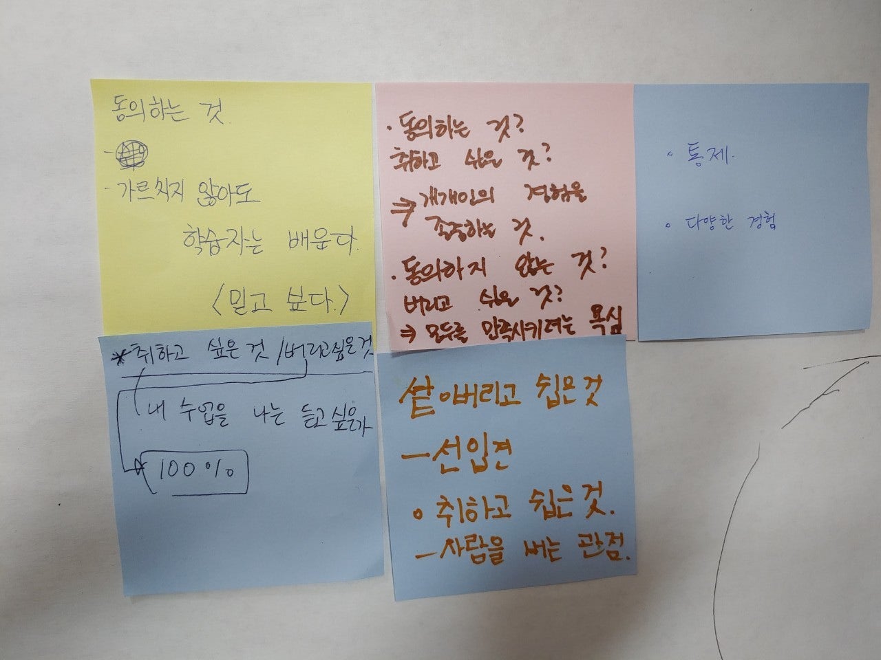 [궁금한 점, 동의 혹은 동의할 수 없는 내용(취하거나 버리거나)]