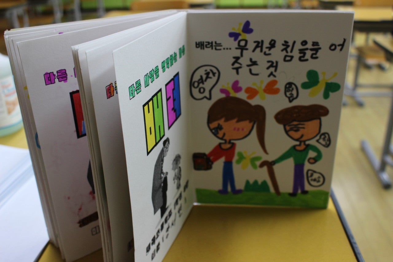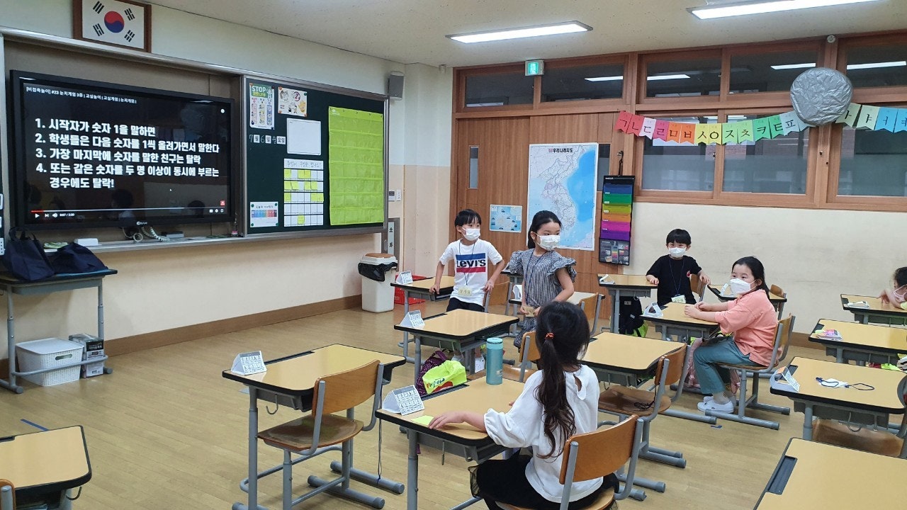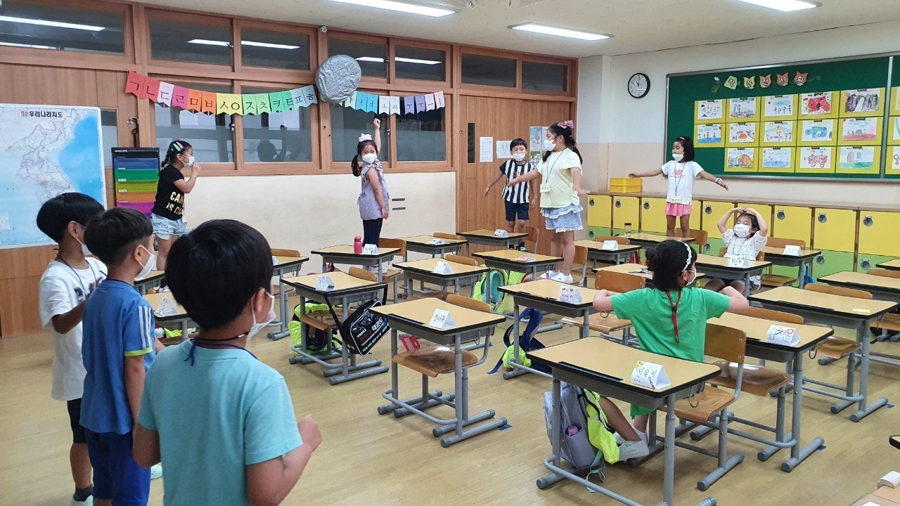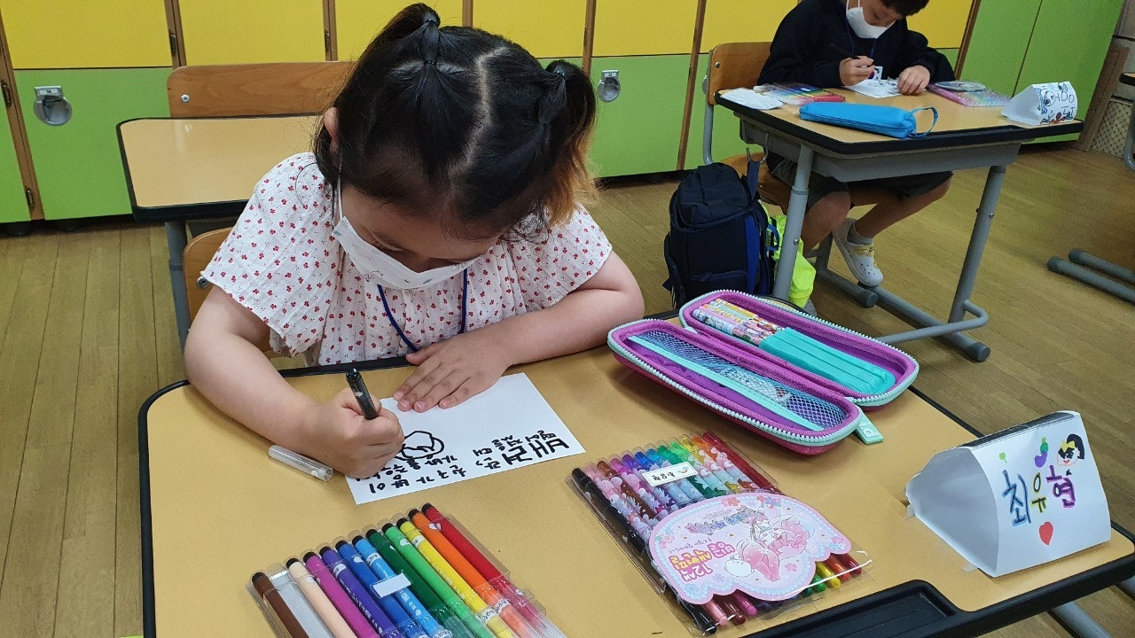 학교 생활이 처음인 1학년 학생들과 함께 학교에서 지켜야 할 것들은 무엇이 있는지 생각해보고 규칙을 정해보았습니다. 공통적으로 뛰지 않기, 친구에게 고운 말 쓰고 폭력 쓰지 않기, 조용히 생활하고 수업시간에 집중하기 등 여럿이 생활하는 공간에서 다른 사람을 생각하고 배려하자는 취지의 의견이 많았습니다. 또한 코로나19라는 특수성 아래에서 마스크를 잘 쓰기, 다른 사람 물건 함부로 만지지 않기 등도 나와 남을 배려하는 행동임을 이야기해보았습니다.