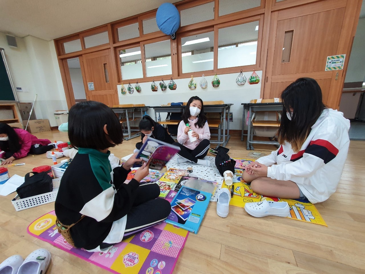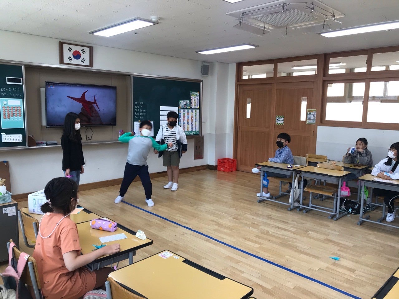 "우리가만드는 행복학교"는 4학년 자치프로젝트와 연계하여 사전에 반별 회의를 통해 각 학급 특색에 맞는 활동을 준비 하였습니다. 마리모키우기, 교실운동회, 운동장과 체육관을 활용한 신체활동, 보드게임카페, 북카페, 학생이 선생님이 되어 가르치는 그리기 교실, 공작 교실, 요가 교실 운영 등 담임교사나 학년차원에서 개입하지 않고 학생들이 직접 계획하고 준비한 시간이었습니다.