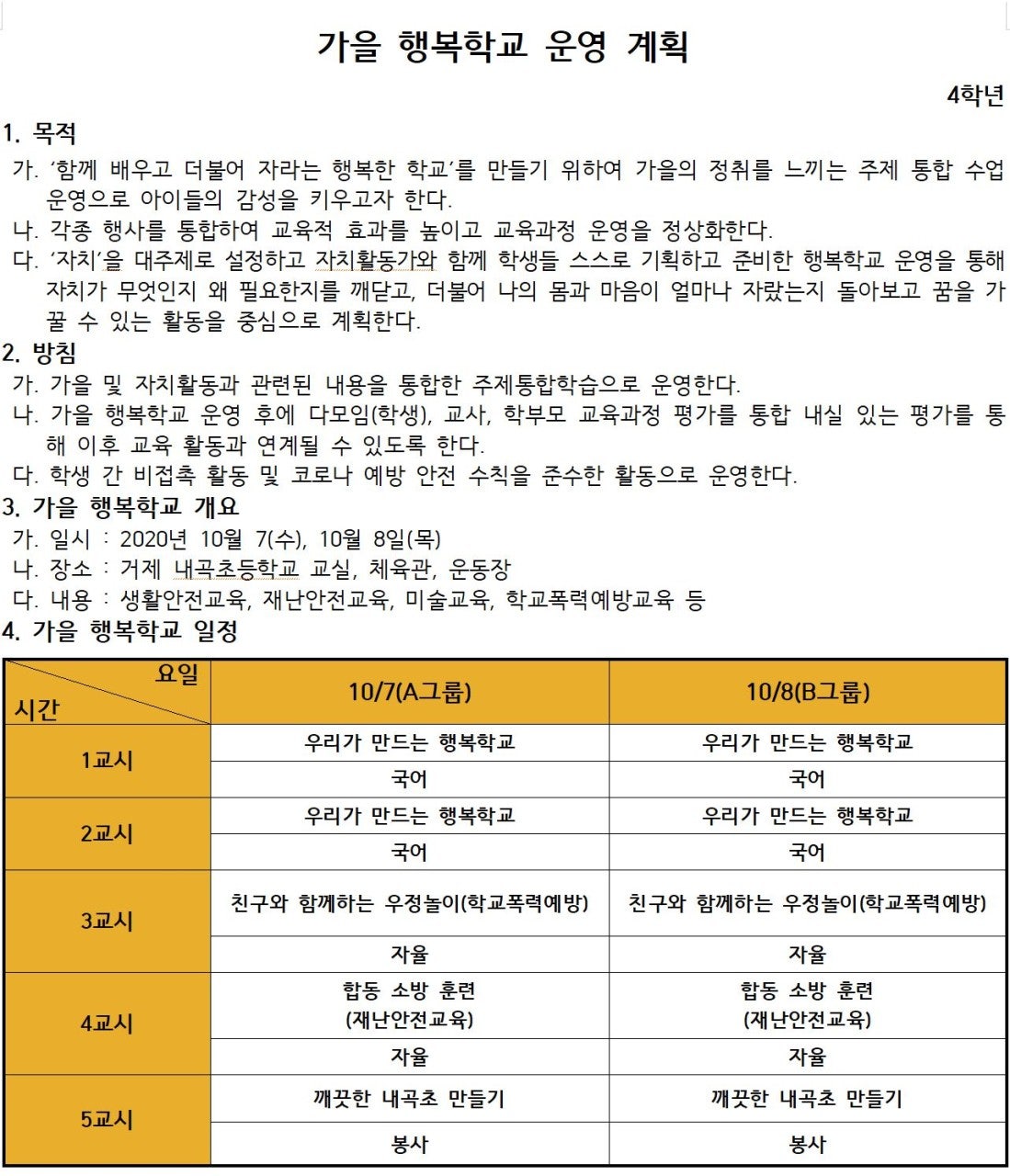 4학년 가을행복학교