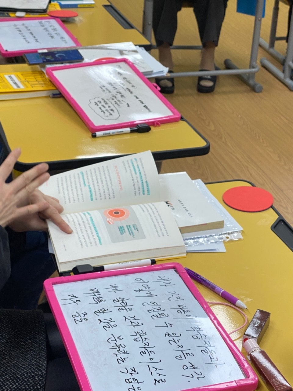 1. 일시 : 12.9.수요일 2. 장소 : 2-7 교실 3. 인원 : 2학년 담임선생님 4. 내용 공유 가. 학습 경험 디자인을 위한 준비 - 이 책에서 말하는 비계 설정이 결국 초등 교육에서는 발문이라 생각된다. 발문에 대한 고민이 필요하다는 생각을 하게 되었다. - 학생들의 경험을 활용한 학습 디자인이 어렵게 느껴진다. 학습 내용을 아이들의 삶과 연계하기위해 수업 연구를 많이 해야겠다. - 내가 가진 내용을 학생들의 삶과 연결지어 수업으로 풀어내기엔 시간적 여유가 부족하다. 내가 아는 것, 즉 가르칠 것과 학생들 스스로 알게할 것을 구분하는 것이 중요하다. 한 학년을 오래 지도해보는 것이 하나의 해결방안이 될 수 있다. 나. 가르치지 않고 경험하게 한 수업 - 국어 주장하는 글쓰기 수업을 교과서의 쥐 이야기 대신 학생들이 흥미를 느낄 수 있는 괴물 이야기를 만들어서 진행해 보았다. - 주장하는 글쓰기 수업에서 토론을 통해 주장하는 글에서 까닭의 필요성을 느끼게 하고 교과서의 제재 대신 학생들이 학교에서 겪을 수 있는 문제점에 대해 글을 쓰게 하니 학생들의 이해도와 참여도가 높아졌다. 5. 사진 번역 중입니다...