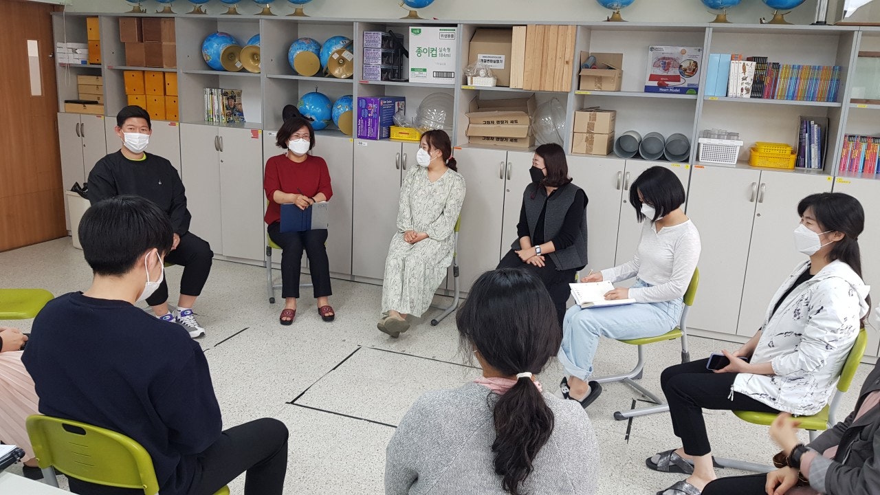2021. 4월 다모임 날짜: 2021년 4월 21일 장소: 과학1실 1. 다모임 참여자:정충효, 구소연, 임정우, 강혜란, 김민진, 강혜정, 조희영, 홍승인, 김해영, 김보순, 교장 선생님