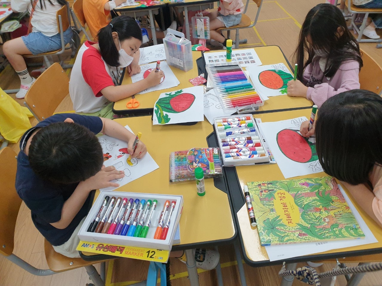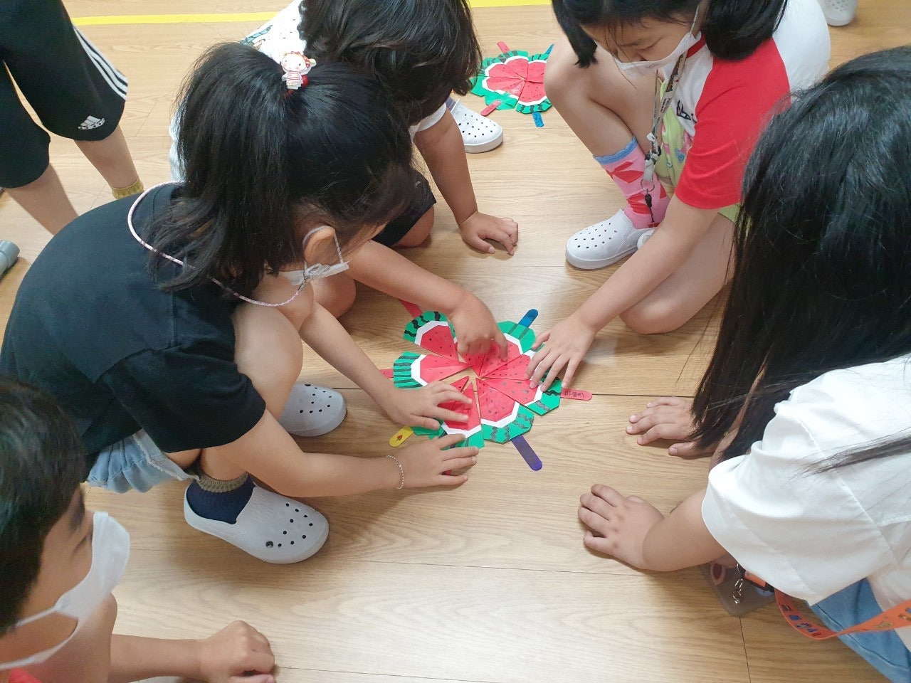 3) 맛있는 책놀이① “수박수영장” 읽고, 수박바 만들기 - “수박수영장”을 읽고, 색종이로 수박바 만들기 활동을 하였습니다.