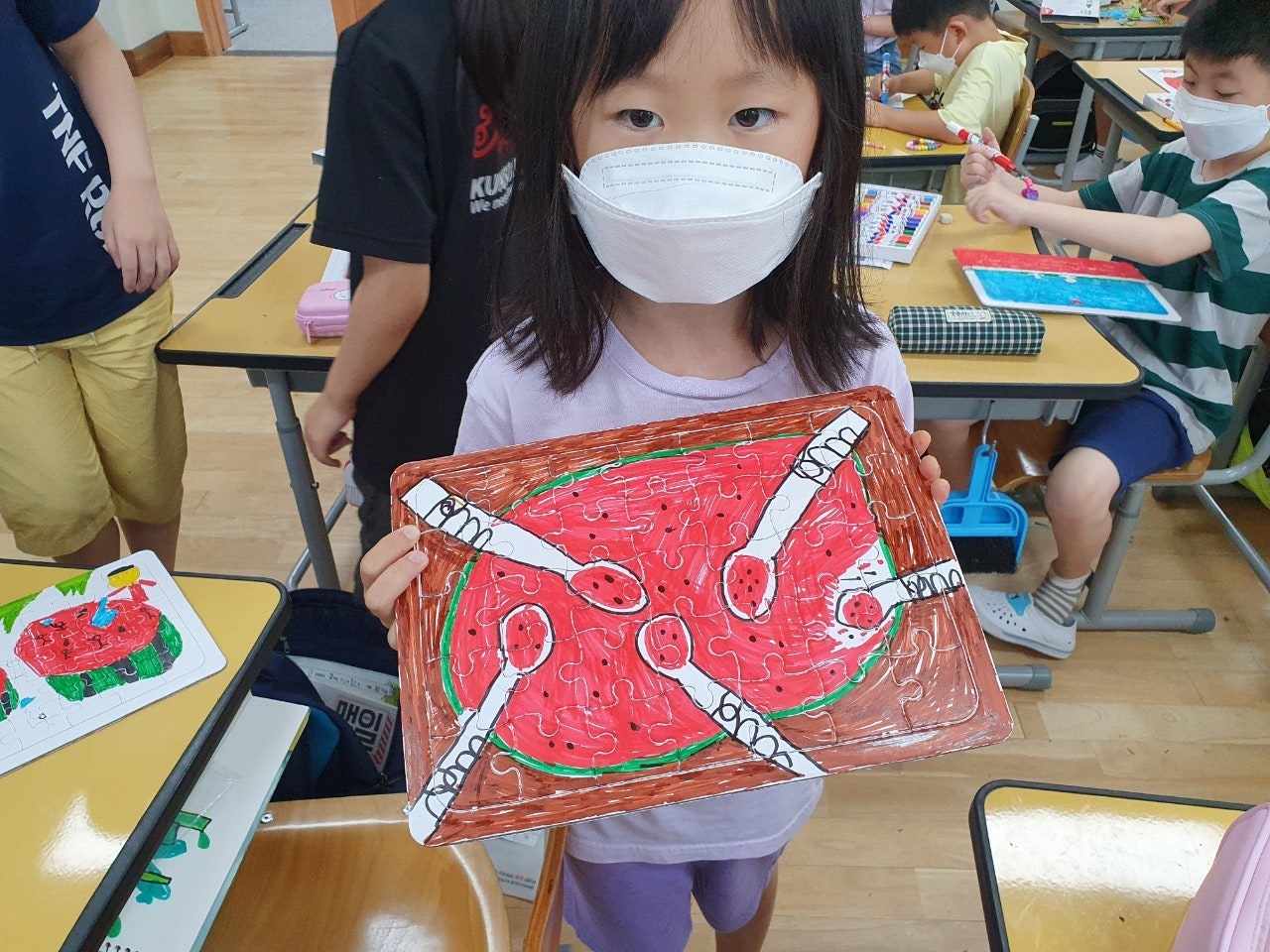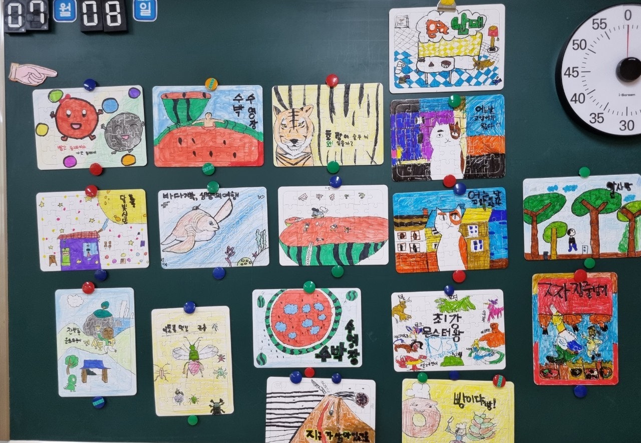 5) 맛있는 책놀이③ 인상 깊은 장면으로 퍼즐 만들기 - “수박수영장”이나 자기가 가지고 온 책에서 인상 깊은 장면을 골라 퍼즐로 만들어 보는 활동을 하였습니다.