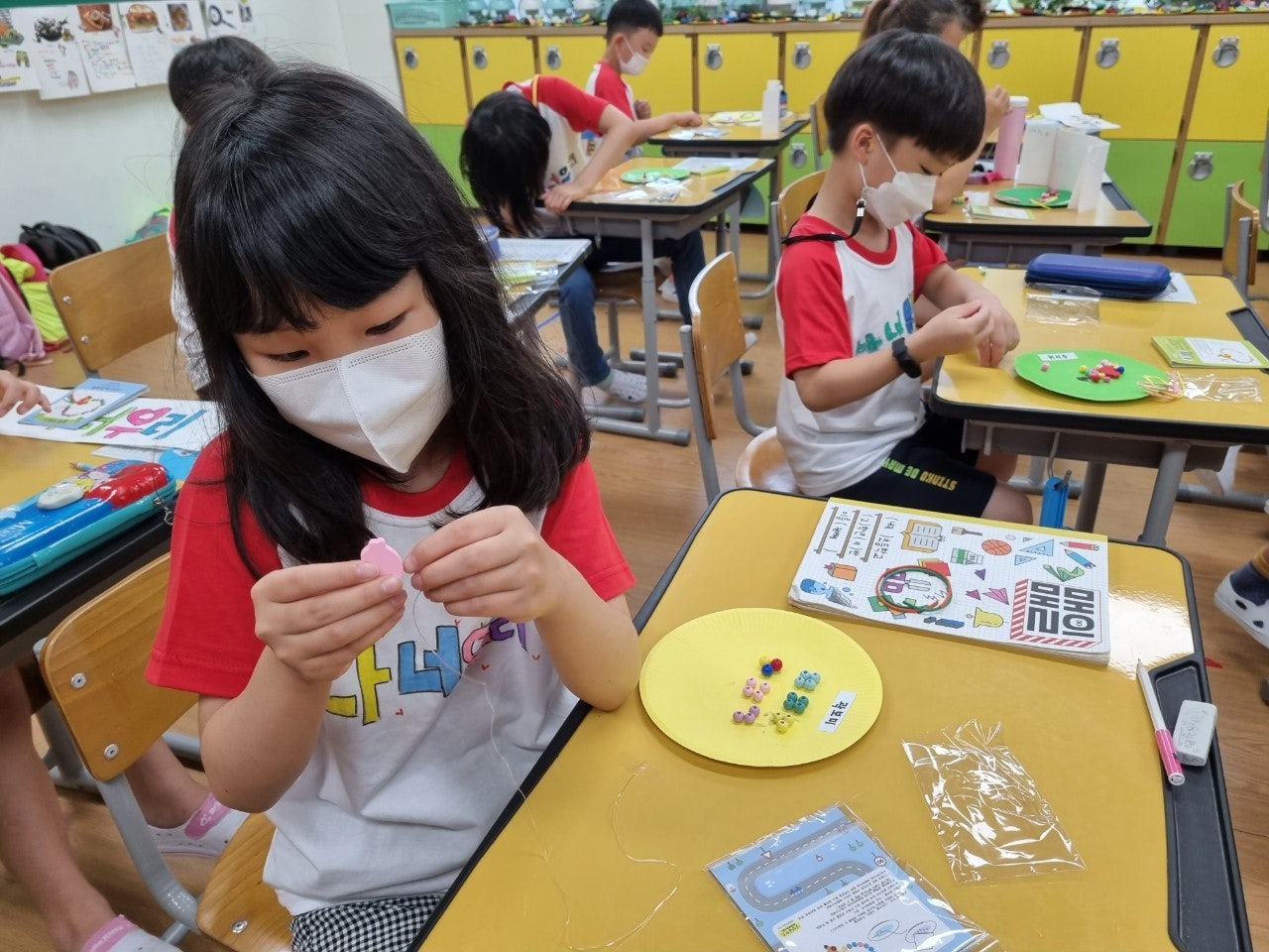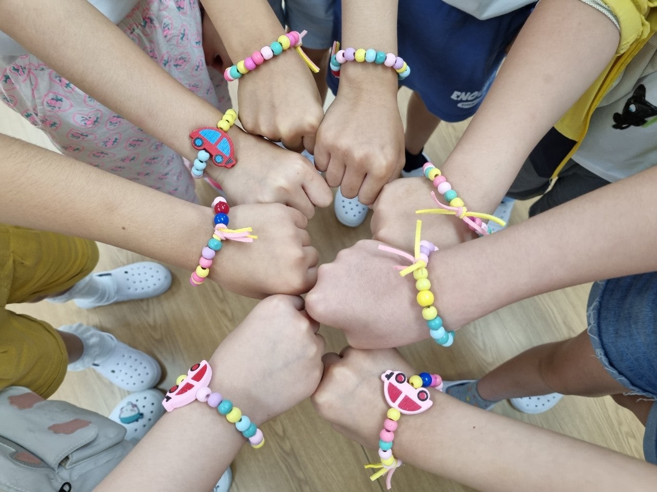 2) 마음을 나눠요(팔찌 만들기) - 기준을 정하여 구슬을 분류해 보고, 분류한 구슬로 팔찌를 만들고 어떤 방법으로 팔찌를 만들었는지 말해 보는 활동을 하였습니다. 완성된 팔찌는 감사의 마음을 담아 가족에게 전달하였습니다.