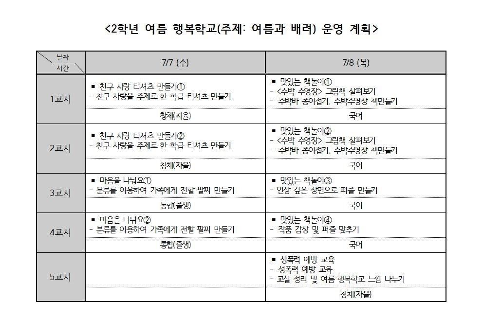 2학년 여름 행복학교