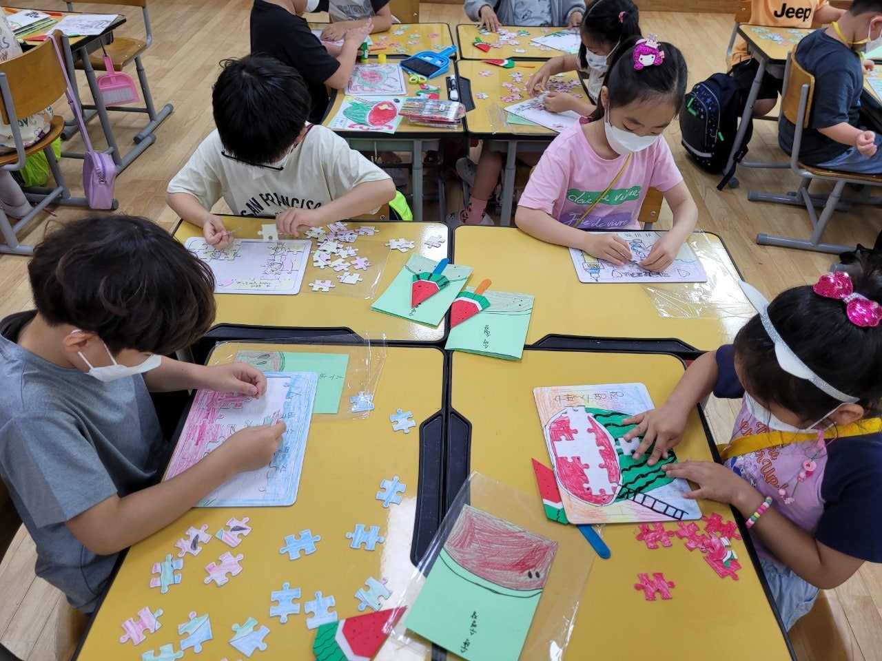 6) 맛있는 책놀이④ 친구들이 만든 퍼즐 감상하고 퍼즐 맞추기 - 친구들이 만든 퍼즐을 함께 감상하고, 자기가 만든 퍼즐을 맞추어 보는 활동을 하였습니다.