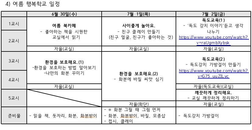 1) 여름 북카페- 좋아하는 책을 시원한 교실에서 읽기