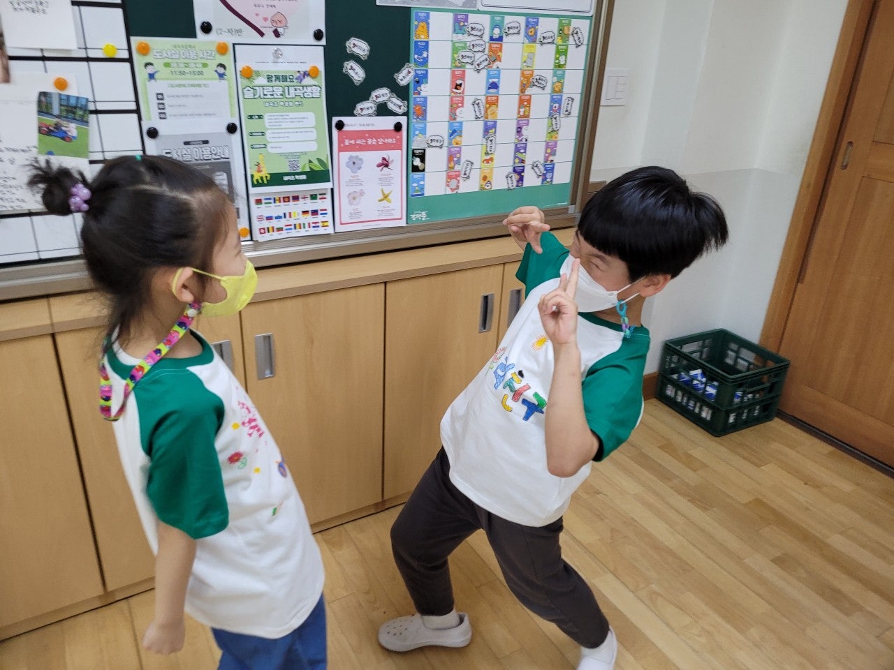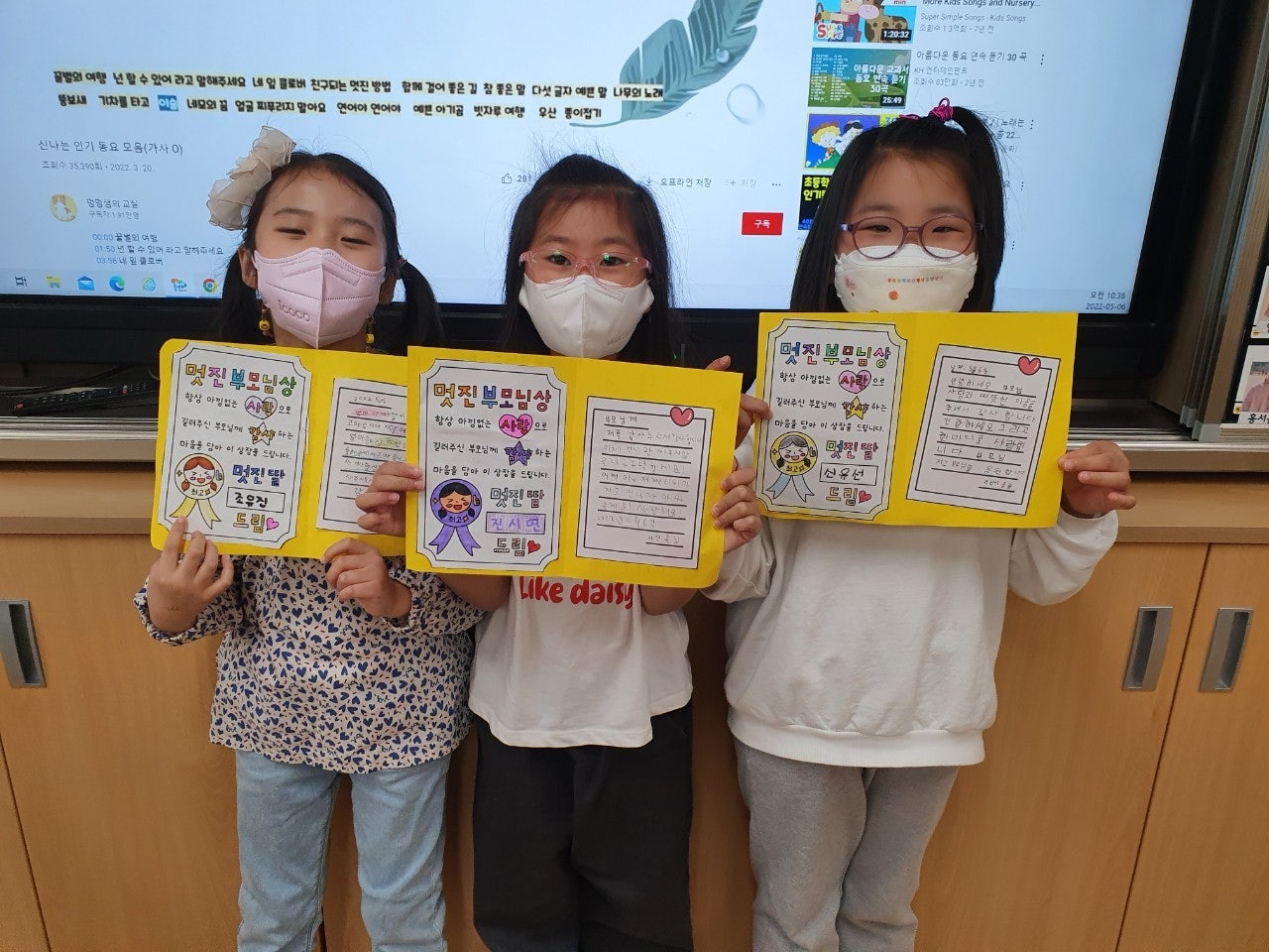 2) '친구 사랑' 학교폭력예방 마음 다지기(어울림 프로그램 - 자기존중감) - 마음통통 인사하기, 거울아 거울아 놀이하기, 내가 좋아하는 것, 싫어하는 것 찾아보기, 자신을 사랑하는 사람이 되기로 약속하기 등 여러 가지 방법으로 나의 모습을 찾아보고 나를 이해할 수 있는 시간을 가졌습니다.