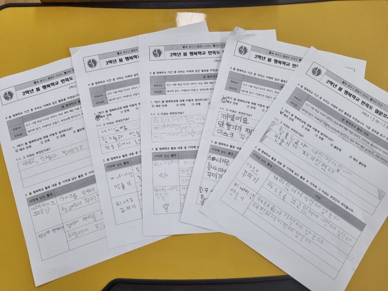 6) 교실 정리정돈하기 및 봄행복학교 느낌 나누기 - 교실을 정리정돈하고, 봄행복학교에 대한 느낌을 나누어 보는 시간을 가졌습니다.
