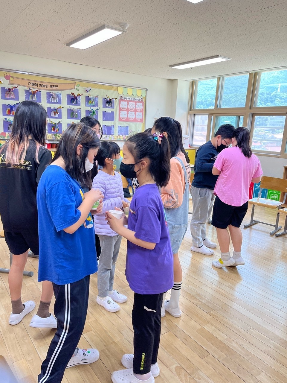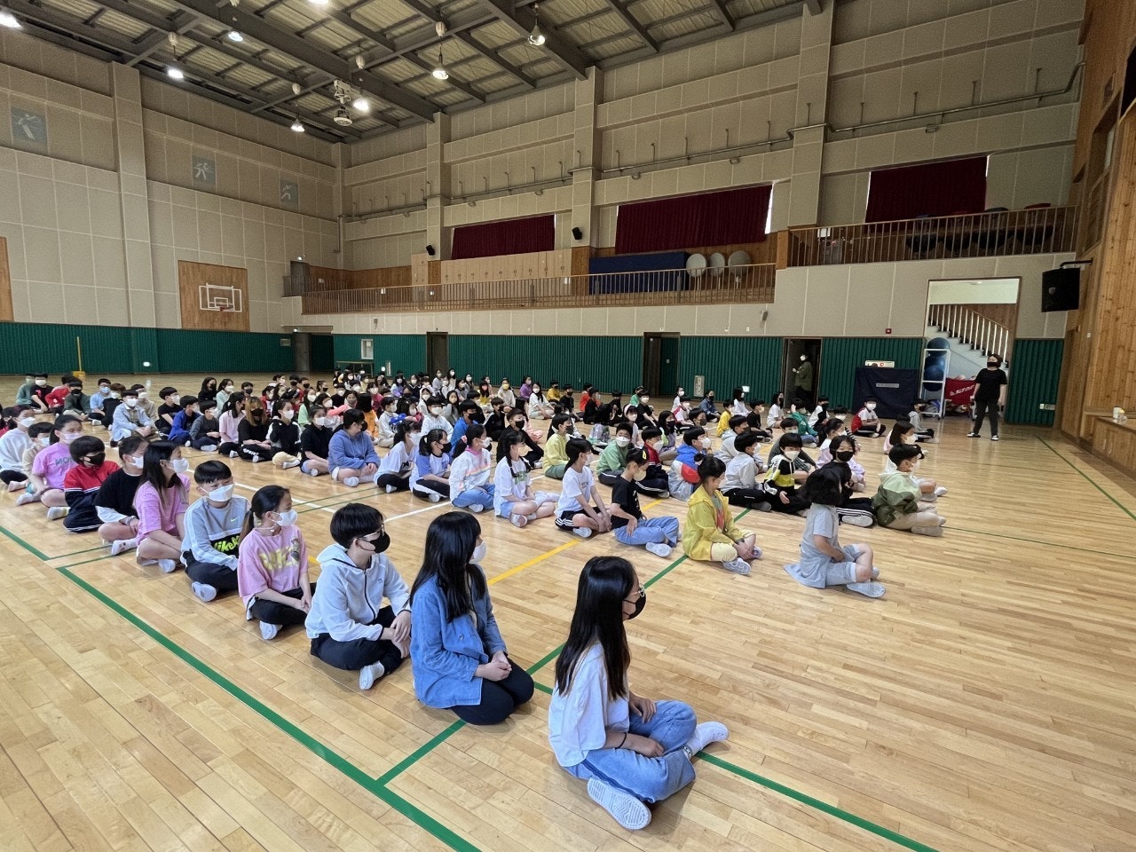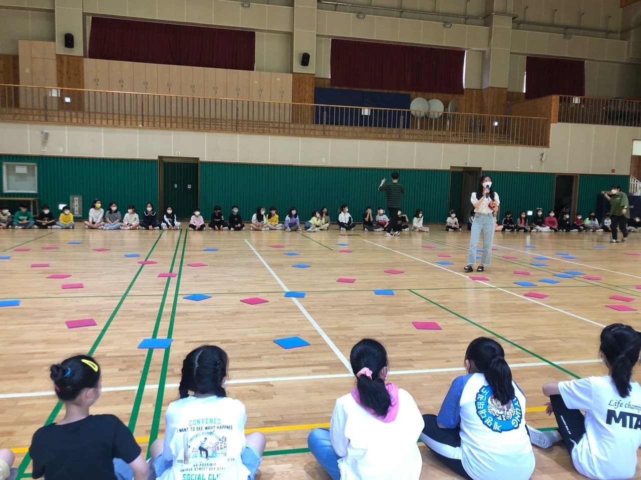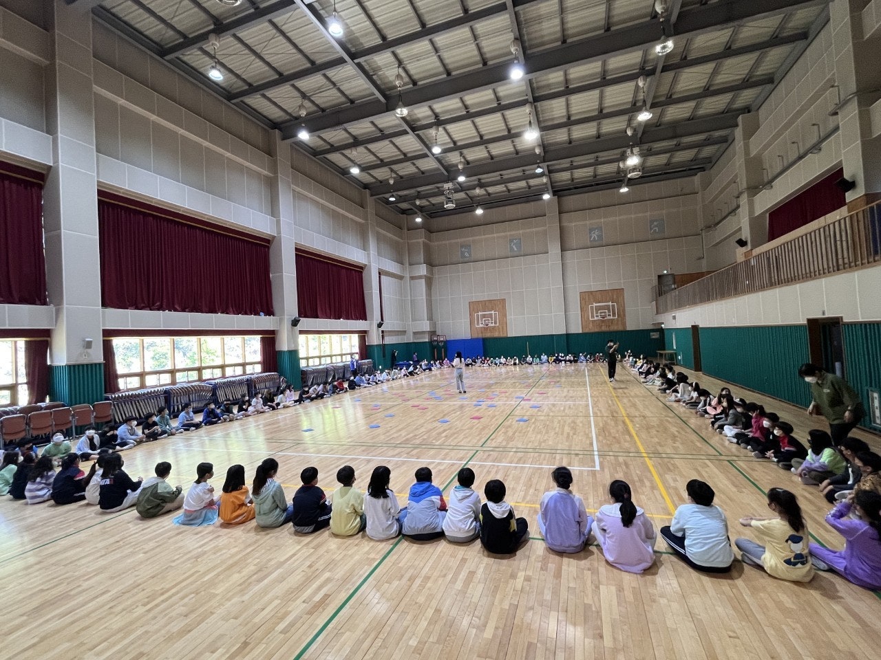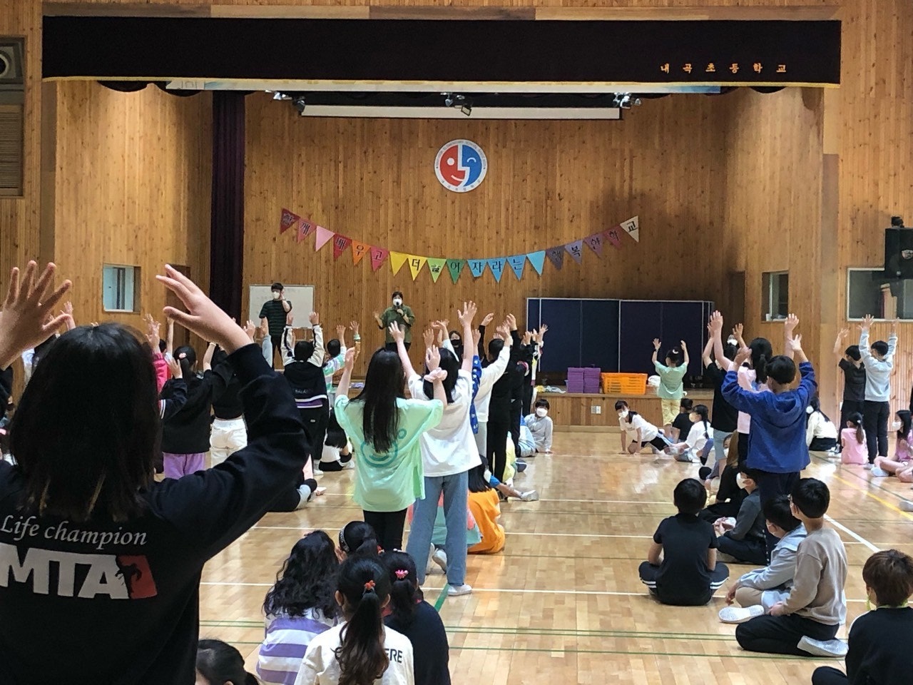 학생들과의 의사소통 경험을 위해 교실 올림픽을 진행하였습니다. 처음 의도는 교실에서 학급 친구들과 하는 것이었지만, 다른 반 친구들과도 의사소통할 수 있도록 하기 위해서 체육관에서 일부 진행하였습니다. 전담과 학교폭력예방교육 강사 수업이 많아 참여하지 못한 반도 있어 아쉬웠지만, 재미있고 안전하게 활동하여 학생들의 만족도가 아주 좋았던 활동이었습니다.