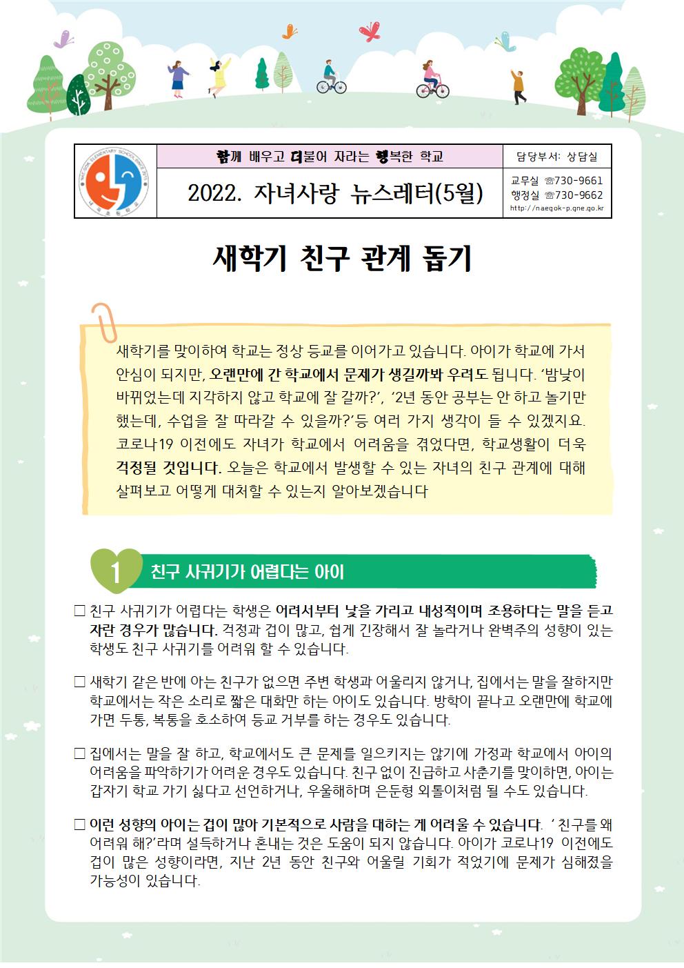 2022. 자녀사랑 뉴스레터(5월)